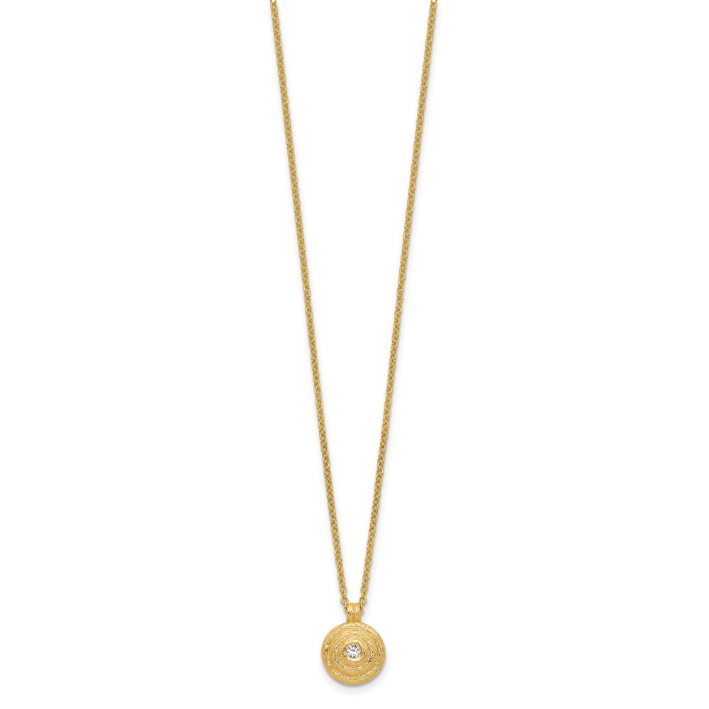 Herco 14K Textured Diamond Circle Swirl Disc 16 Inch with 2 Inch Extension Necklace