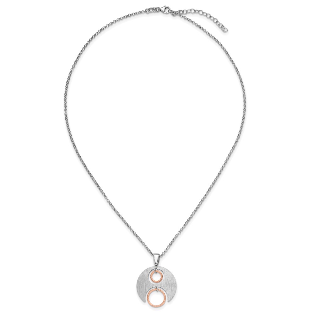 Leslie's Sterling Silver Rh/Rose gold-plat Polish/Brush w/1in ext. Necklace