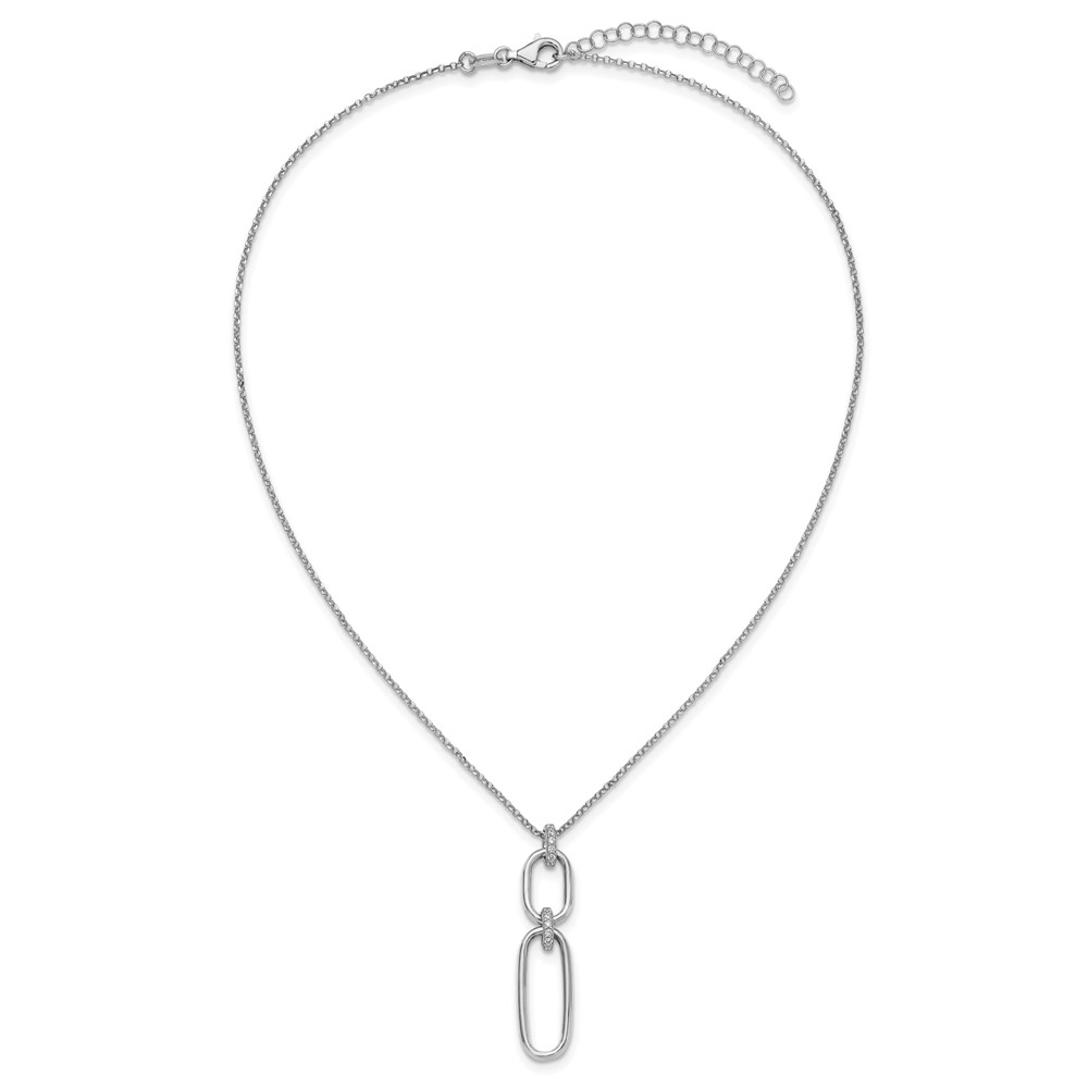 Leslie's Sterling Silver Rh-plated Polished CZ with 2in ext. Necklace