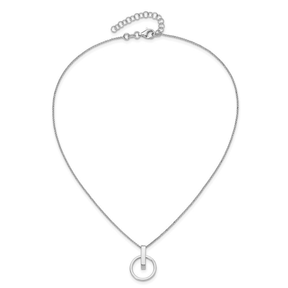 Leslie's Sterling Silver Rh-plt Polished w/2in ext. Circle Pendant Necklace