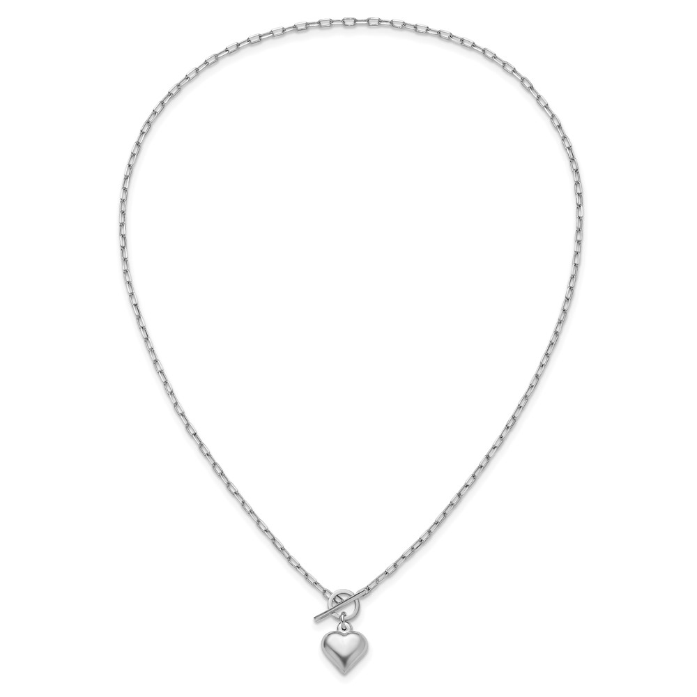 Leslie's Sterling Silver Rhodium-plated Polished Heart Toggle Necklace