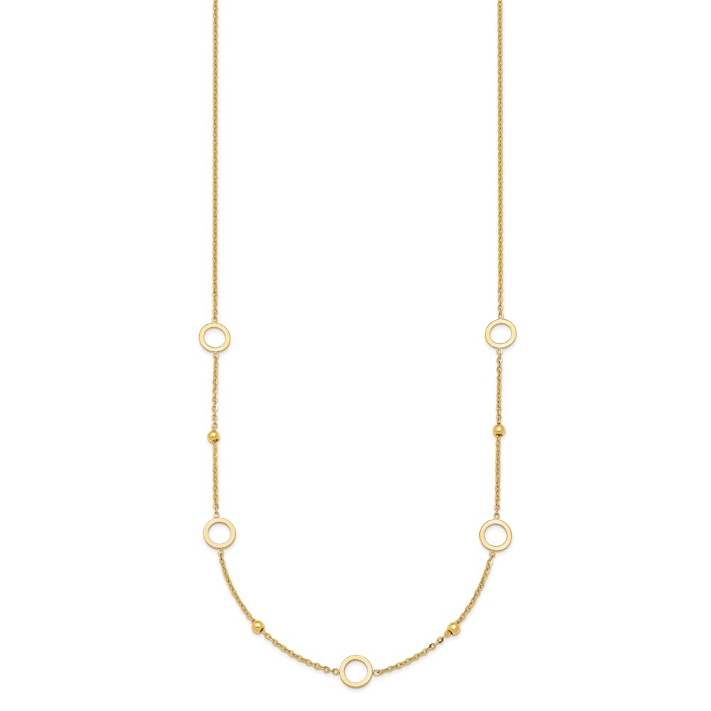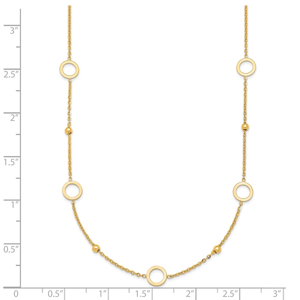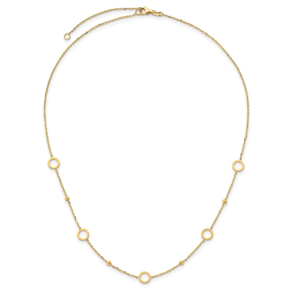 Herco 14K Polished and Beaded Open Circle w/ 2in Ext. Station Necklace