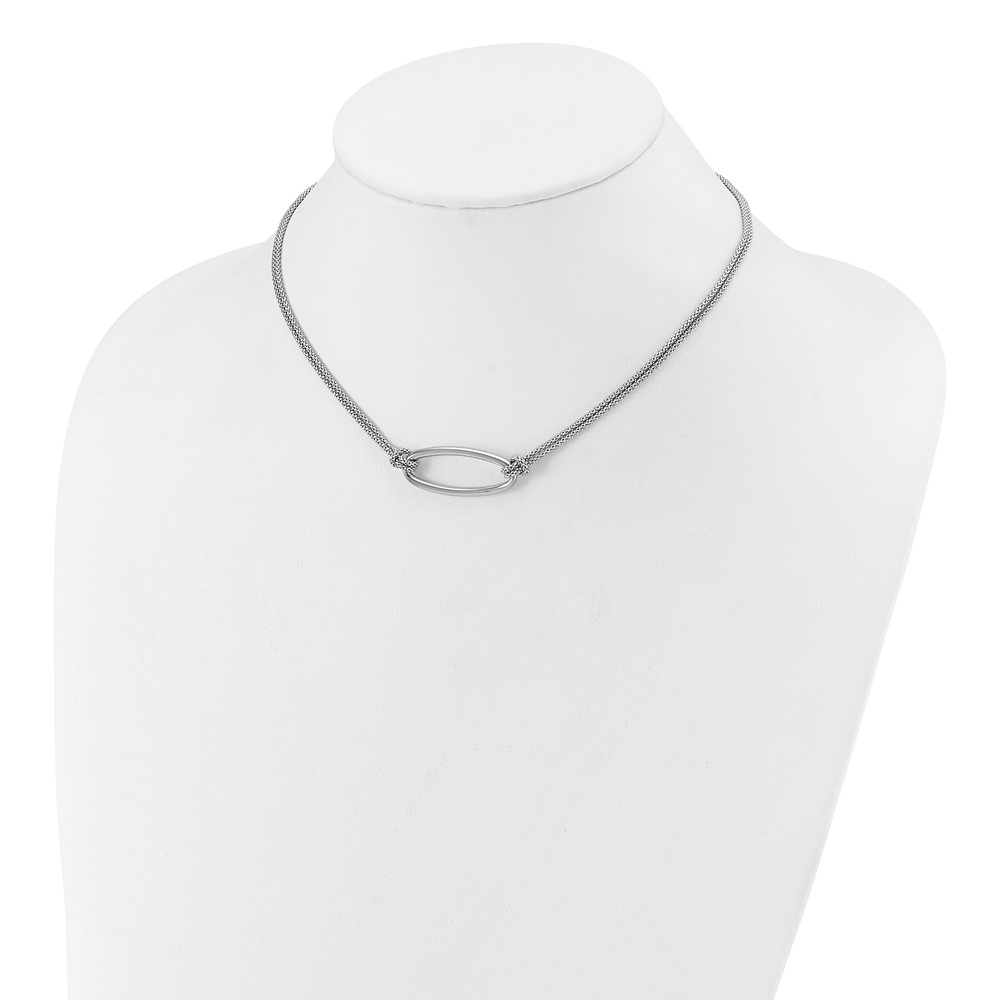 Leslie's SS RH-plat Polish/Dia-cut Oval 2-Strand w/1.25in ext. Necklace