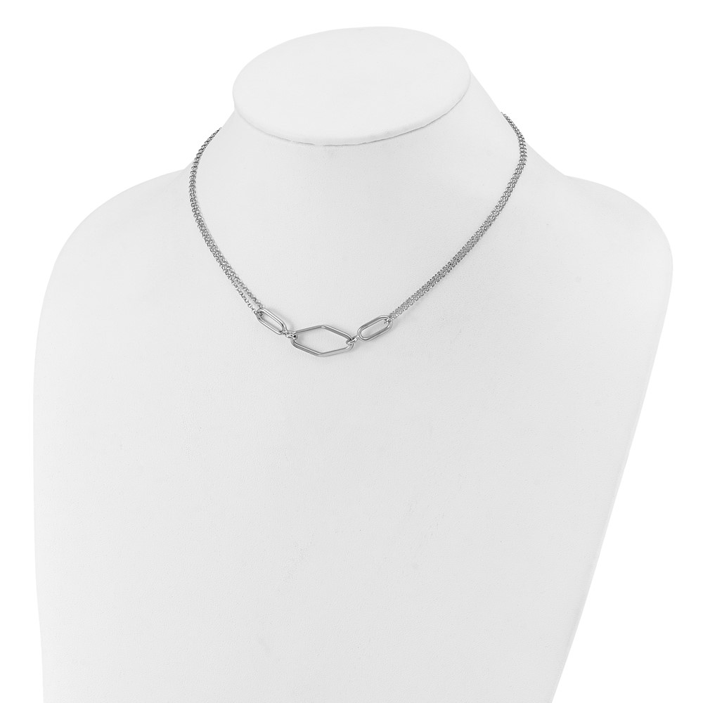 Leslie's SS RH-plat Polish/Dia-cut Fancy 2-strand w/2in ext. Necklace