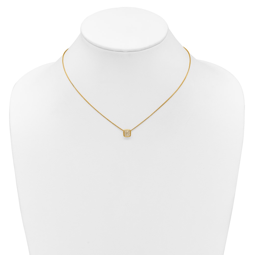Herco 14K Polished and Textured Diamond Square 16.25 Inch with 1.5 Inch Extension Necklace