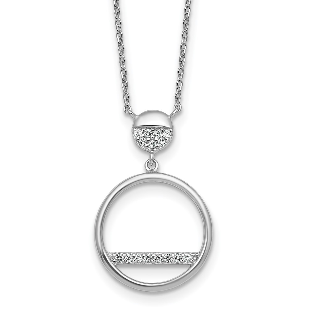 Sterling Silver Rhodium-plated Polished CZ Divided Circle 17.75 inch Necklace