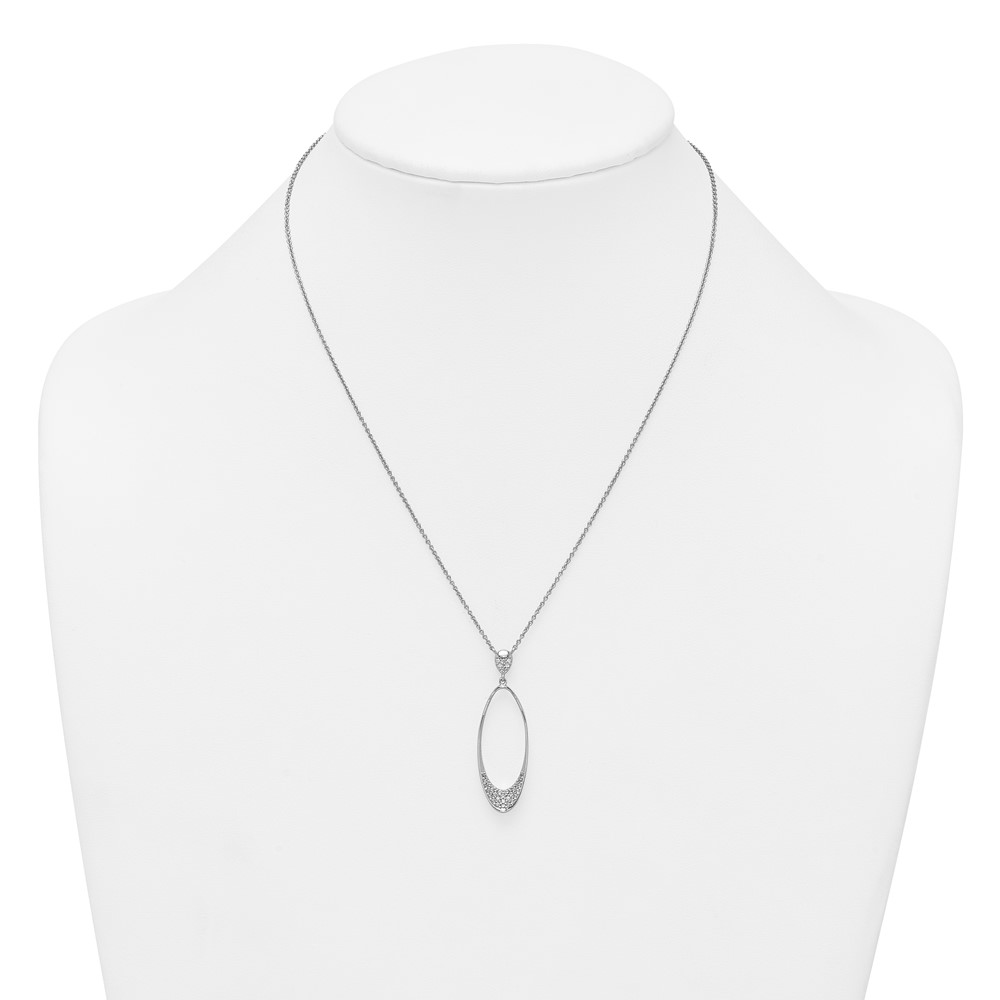 Sterling Silver Rhodium-plated Polished CZ Oval 17.75 Inch Necklace