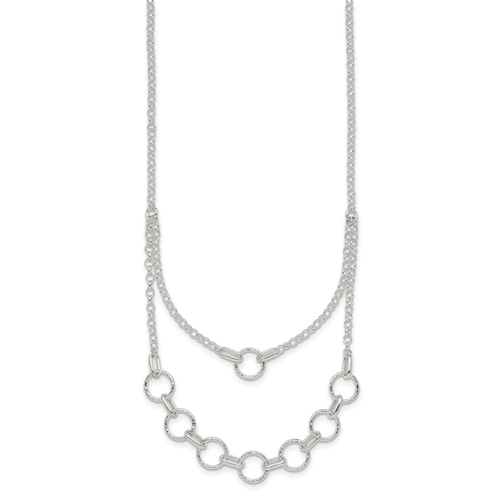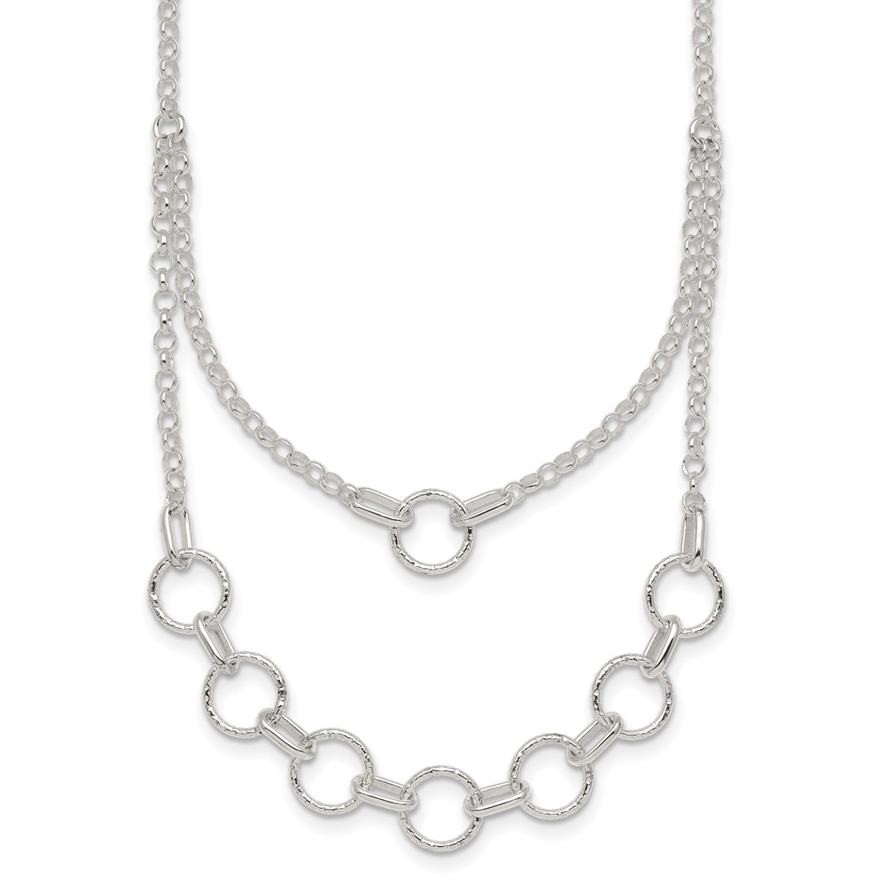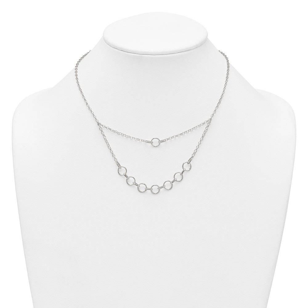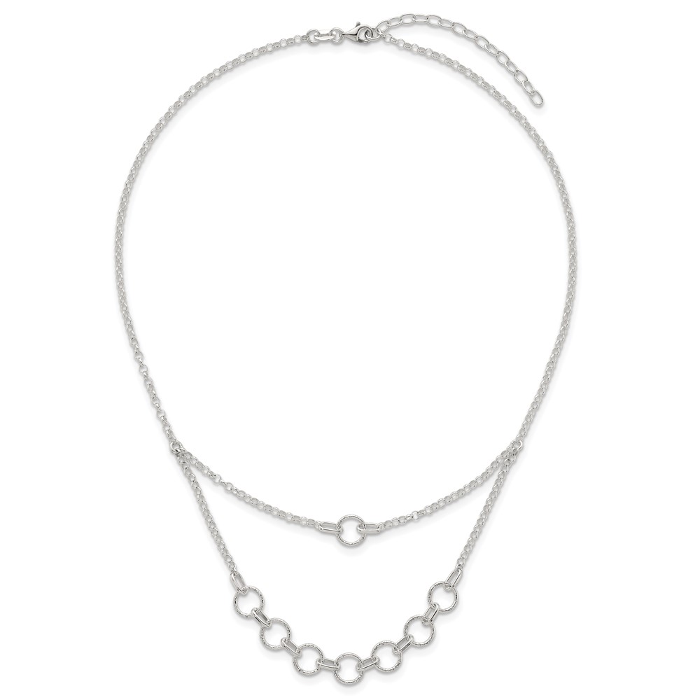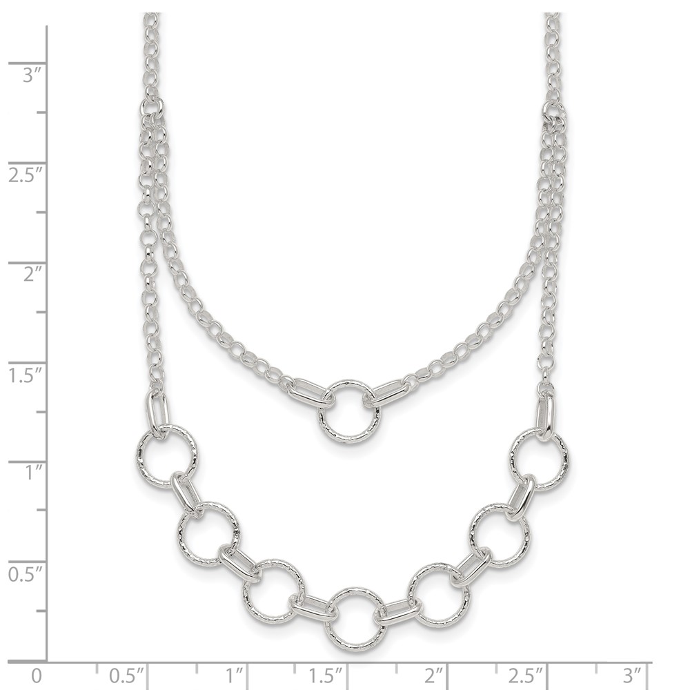 Sterling Silver Polished and Textured Circles Multi-strand 16 inch with 2 inch Extension Necklace