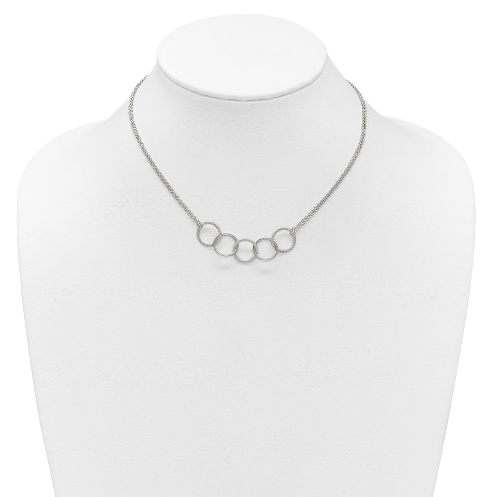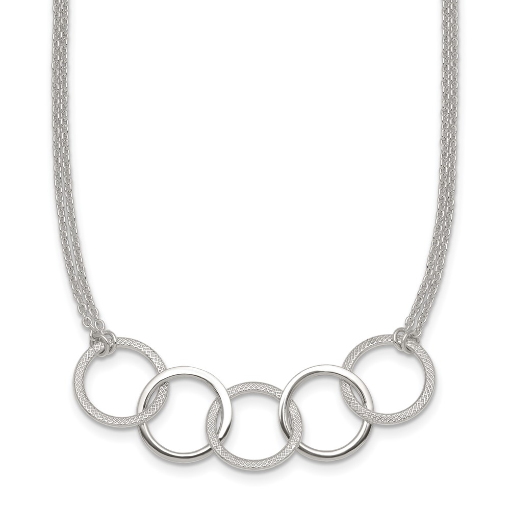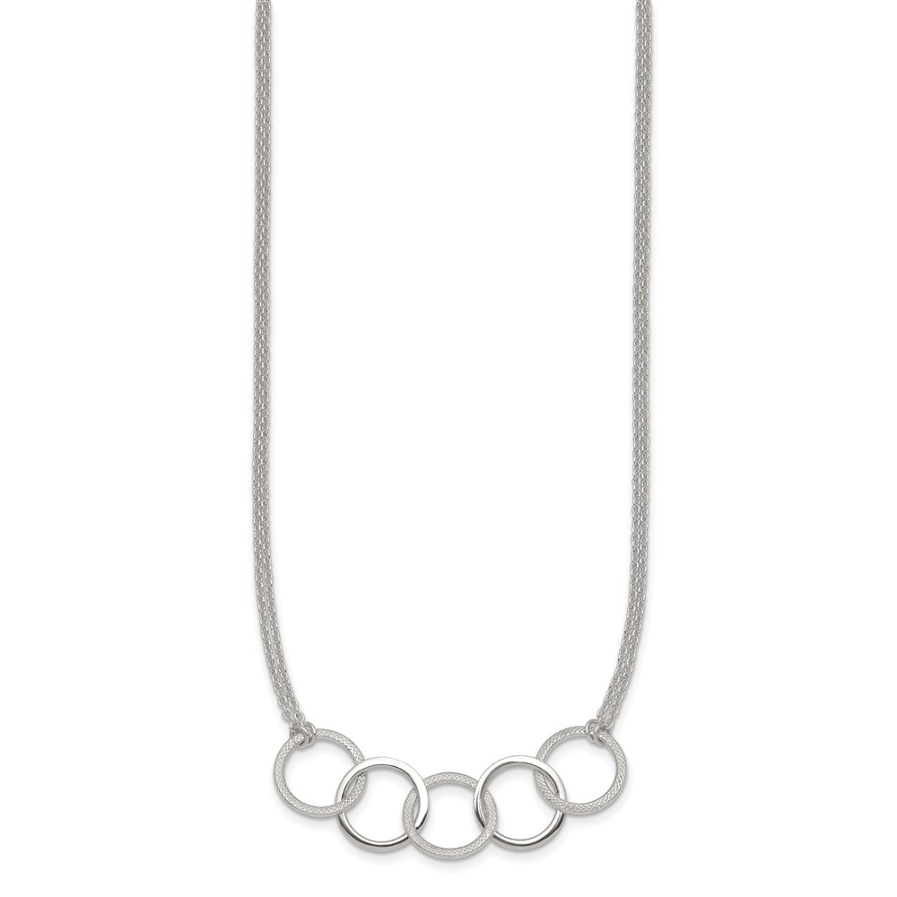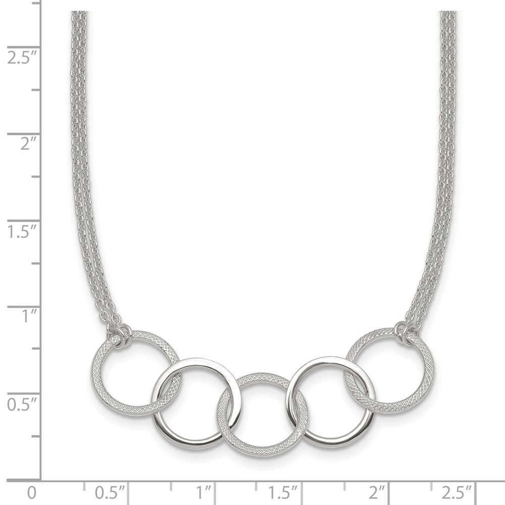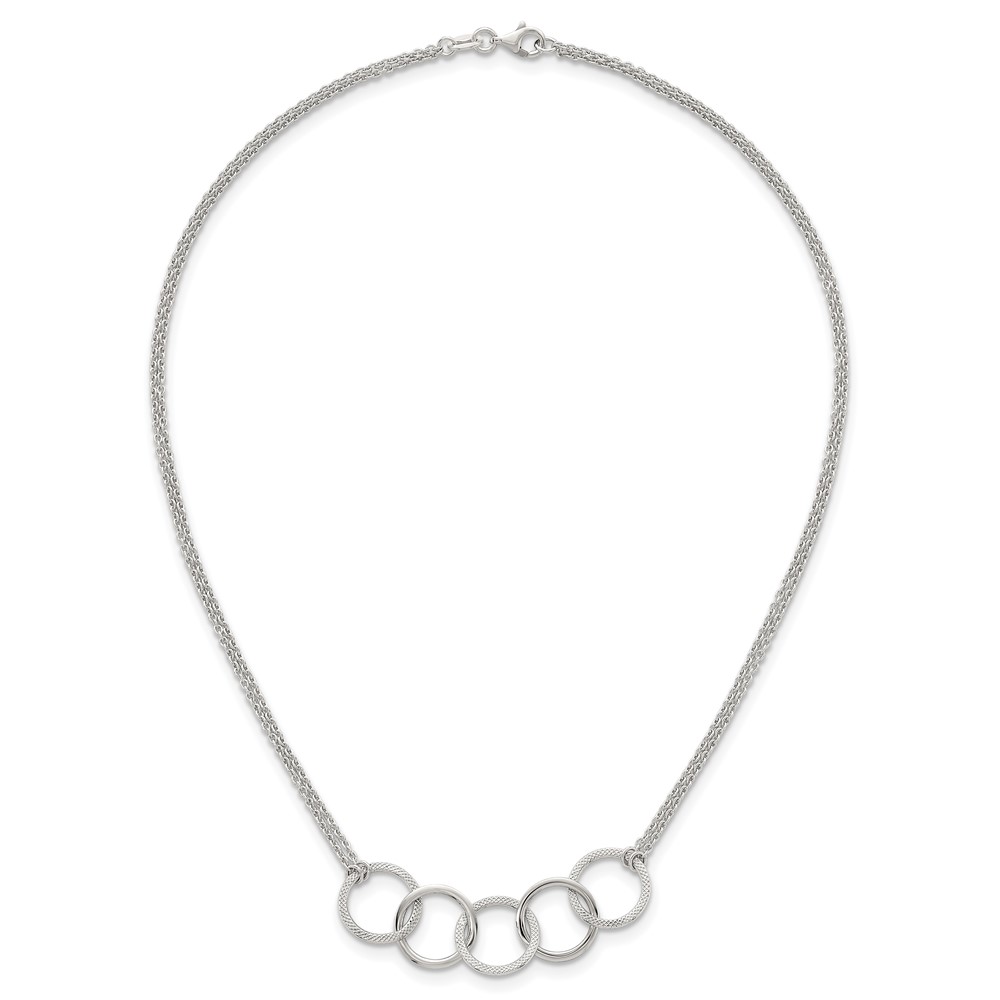 Sterling Silver Polished Textured Double Strand Interlinking Circles 16 inch Necklace