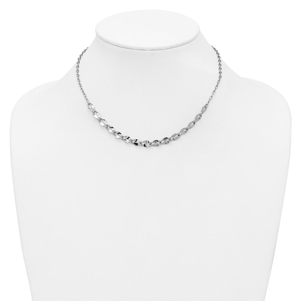 Leslie's Sterling Silver RH-plated Pol. Fancy Link w/2in ext. Necklace