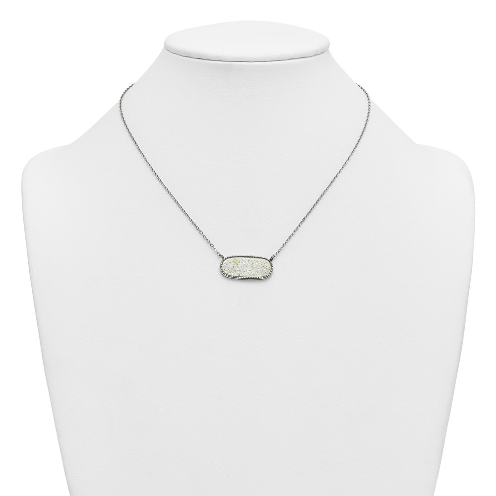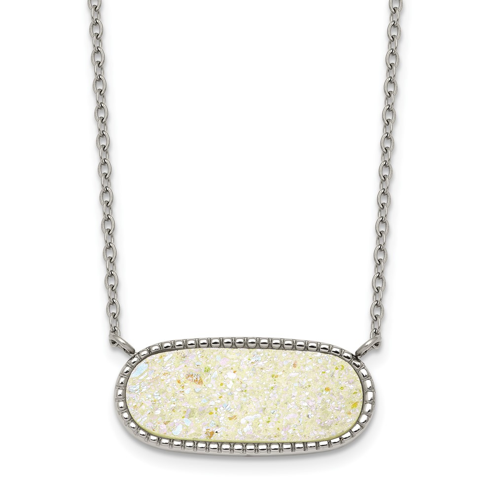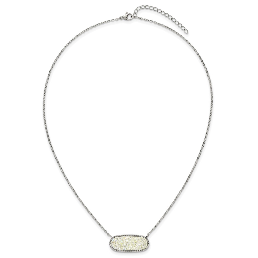 Stainless Steel Polished Sideways Druzy 17.5in with 2in Ext Necklace