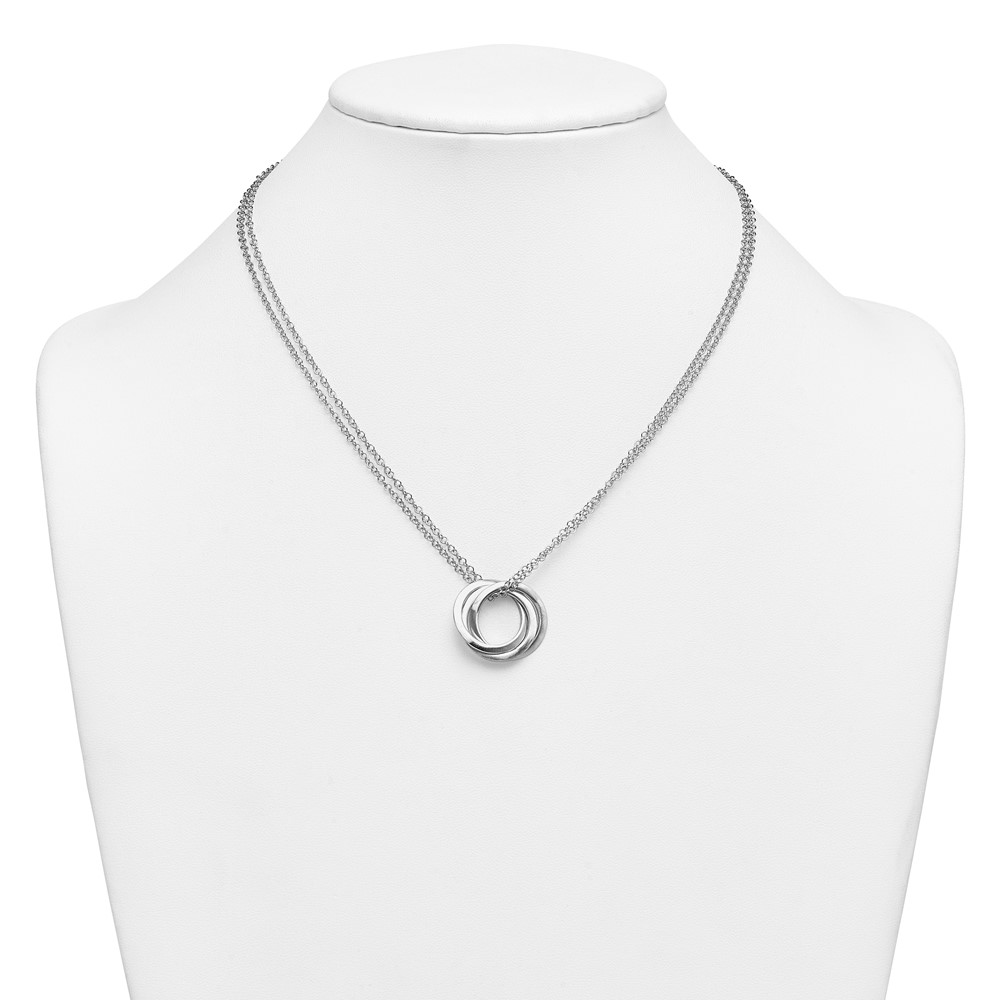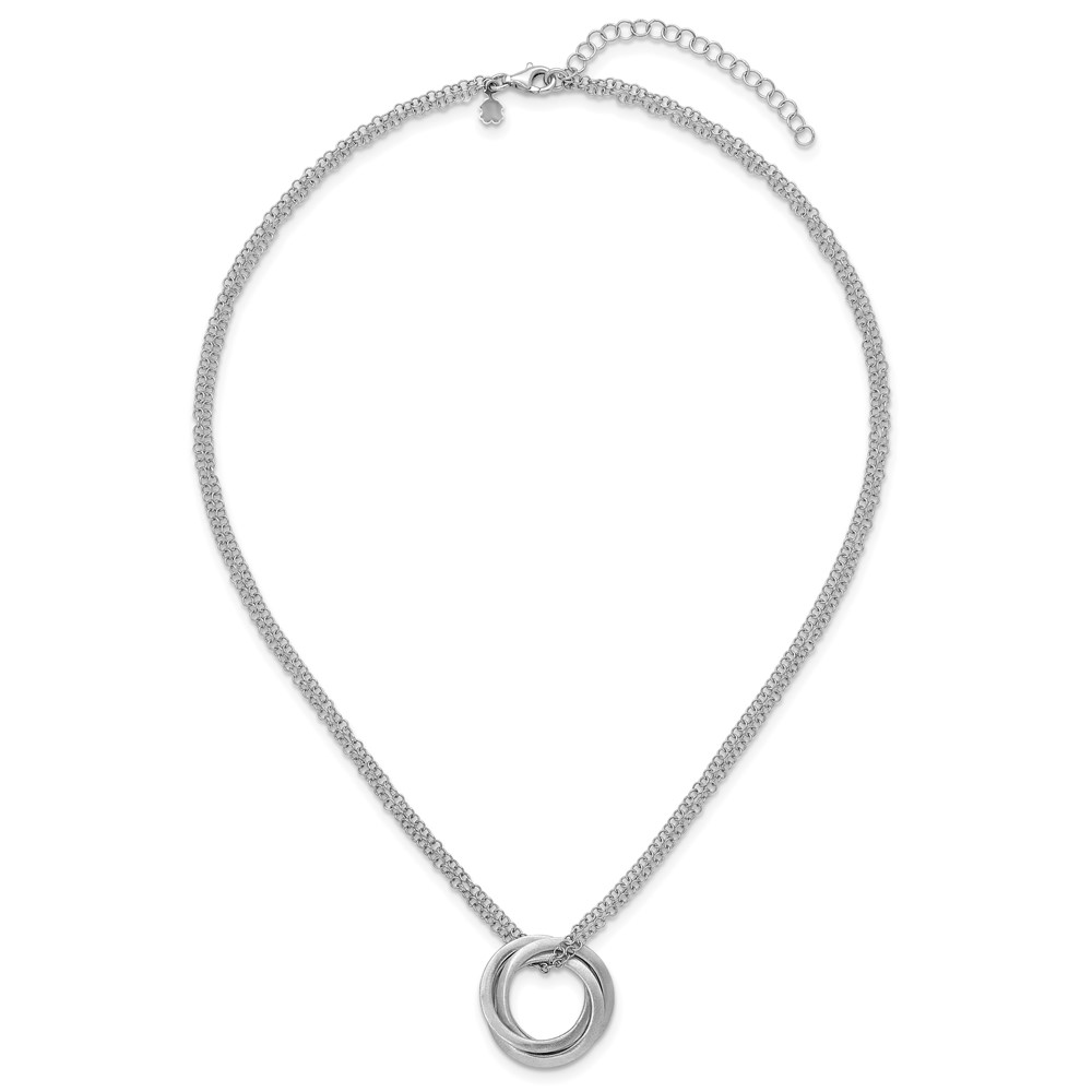 Leslie's SS RH-plat Polished / Brushed Circle 2-Strand w/2in ext. Necklace