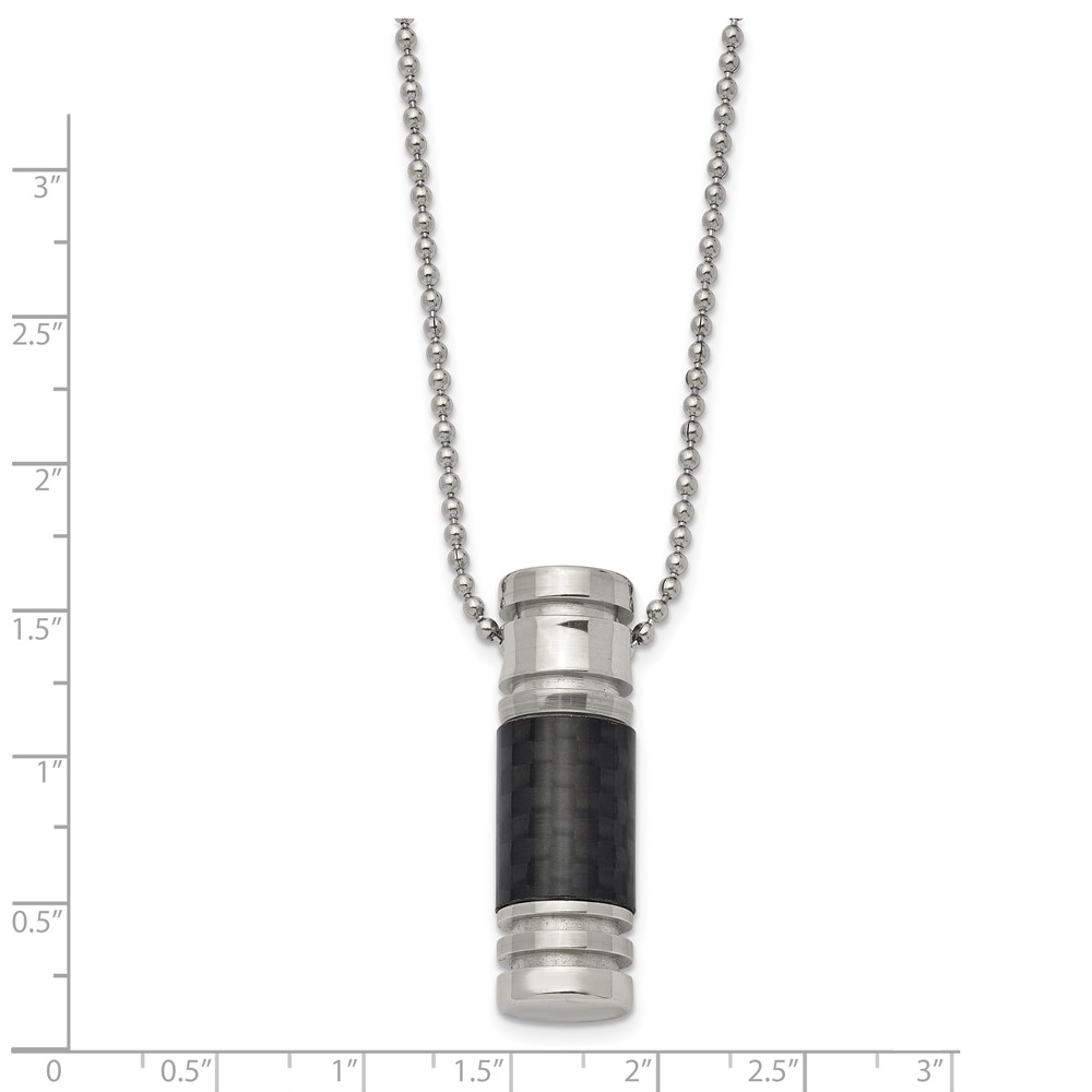 Chisel Stainless Steel Polished with Black Carbon Fiber Inlay Cylinder on a 22 inch Ball Chain Necklace