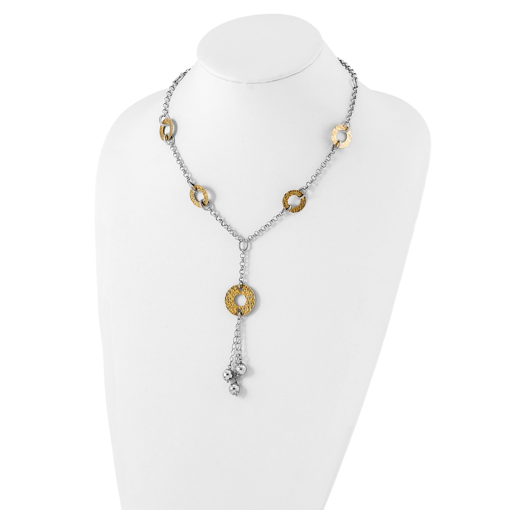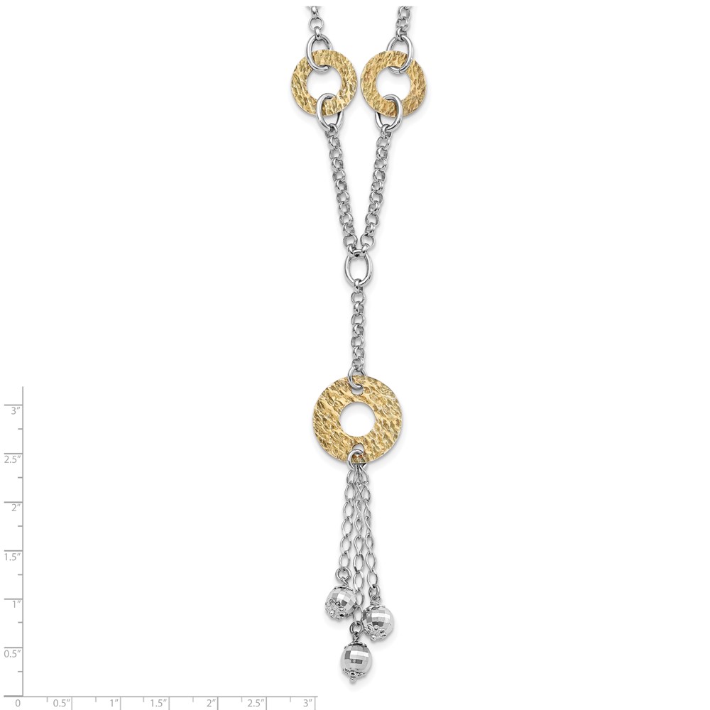 Sterling Silver 18K Gold-plated Fancy Textured Circle Drop Necklace