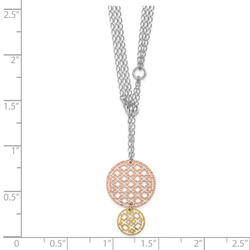Sterling Silver w/ Yellow & Rose-tone Rhodium-plated Textured Circles Drop Necklace