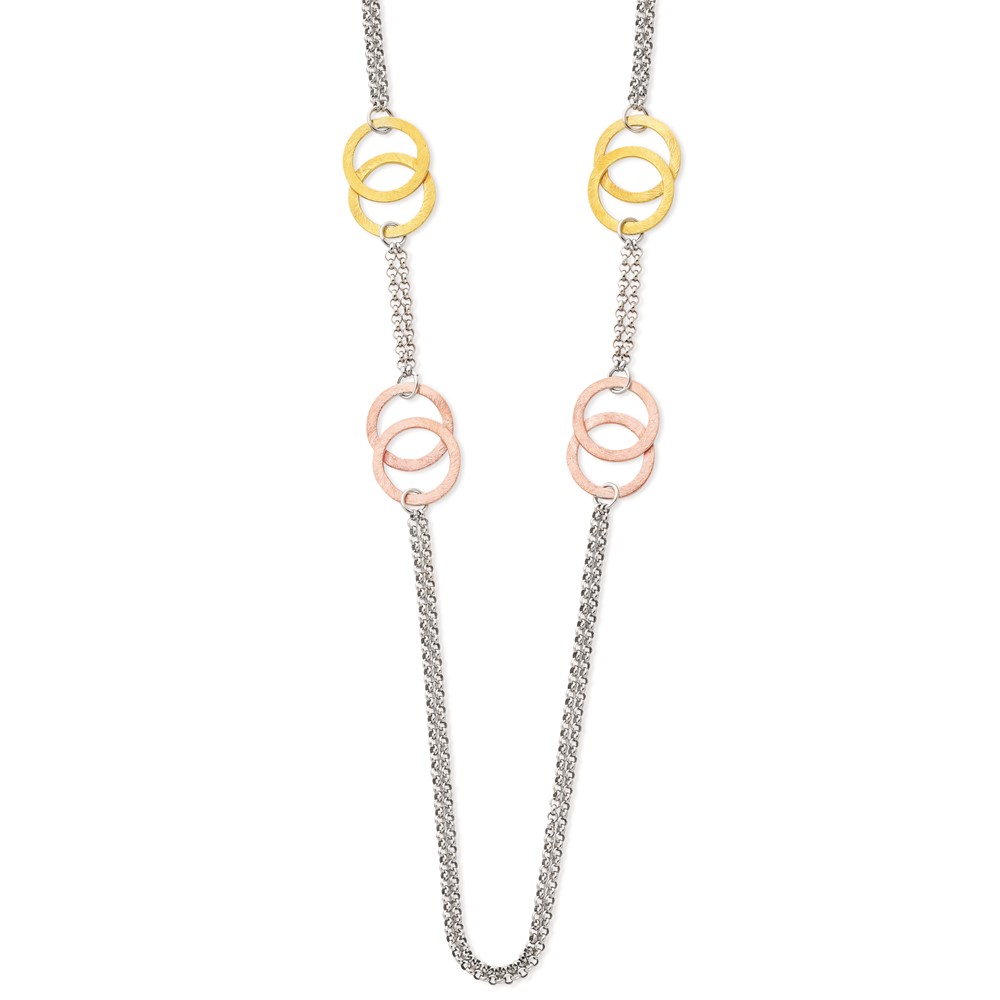 Sterling Silver & Rhodium Double Circles Necklace