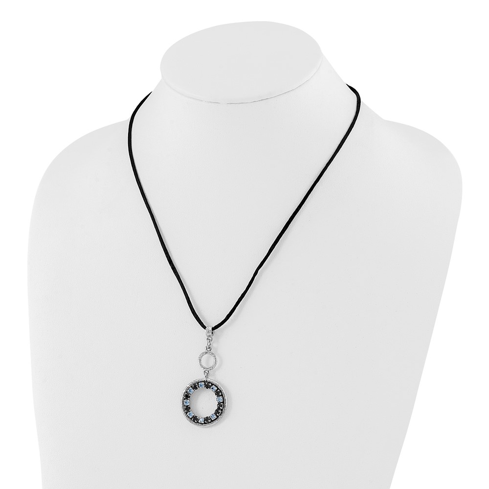 1928 Jewelry Silver-tone Light and Dark Blue Crystal Double Circle Adjustable 16 inch Satin Cord Necklace with 3 inch extension