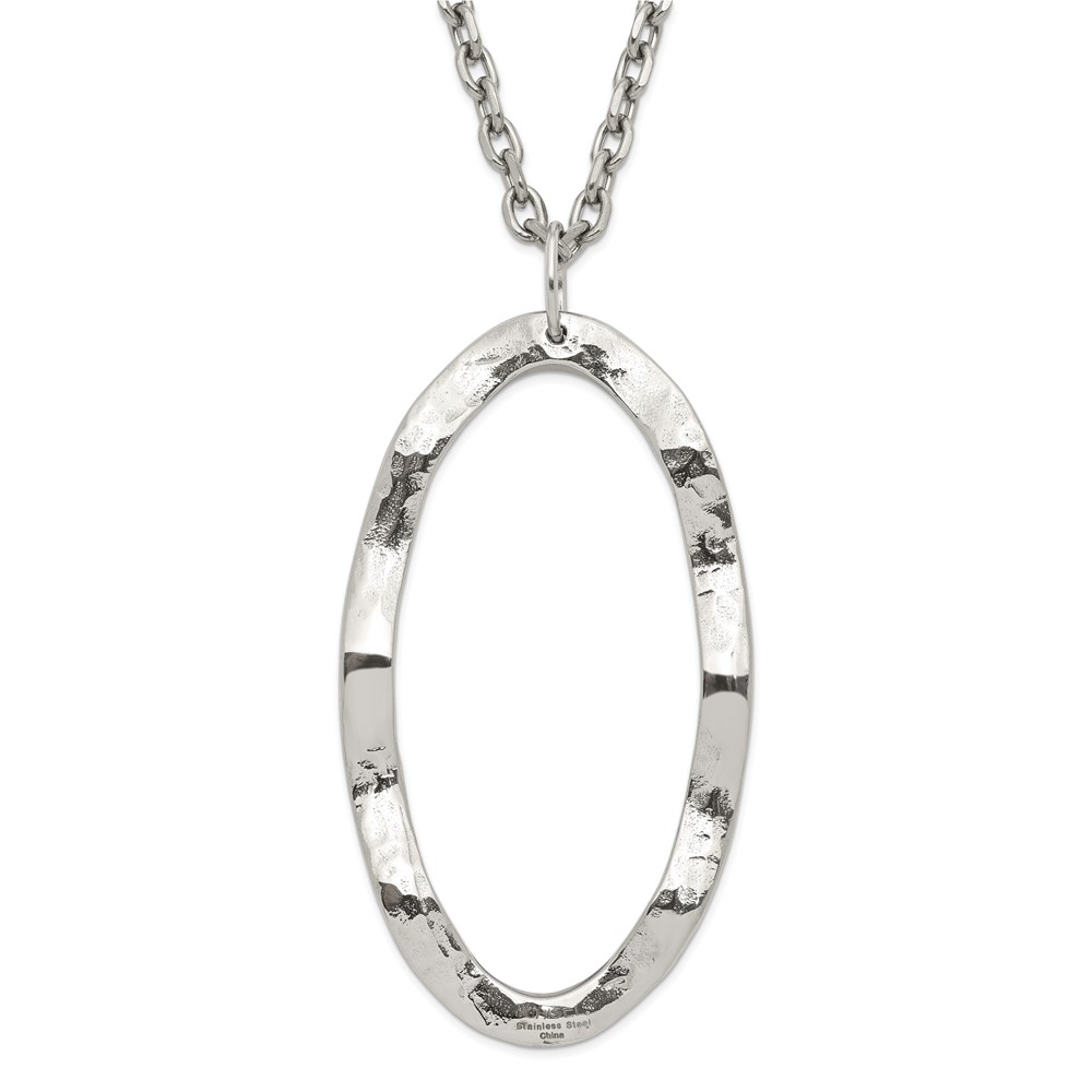 Stainless Steel Hammered Oval Pendant with 2 inch ext Necklace