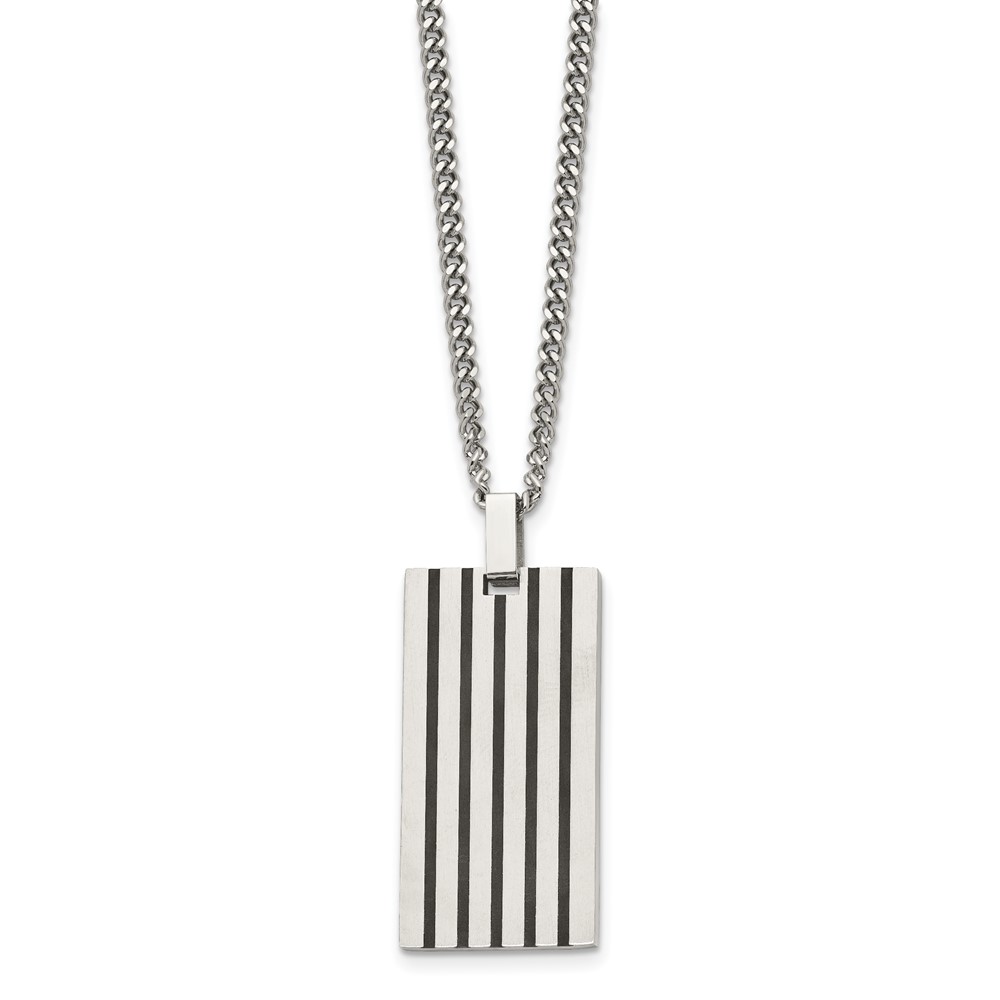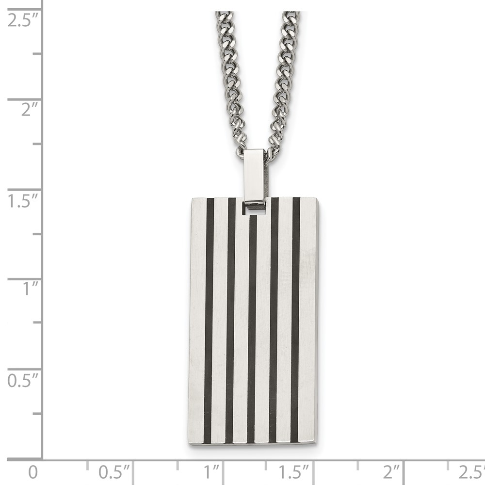 Chisel Stainless Steel Brushed with Black Rubber Inlay Rectangle Dog Tag on a 22 inch Curb Chain Necklace