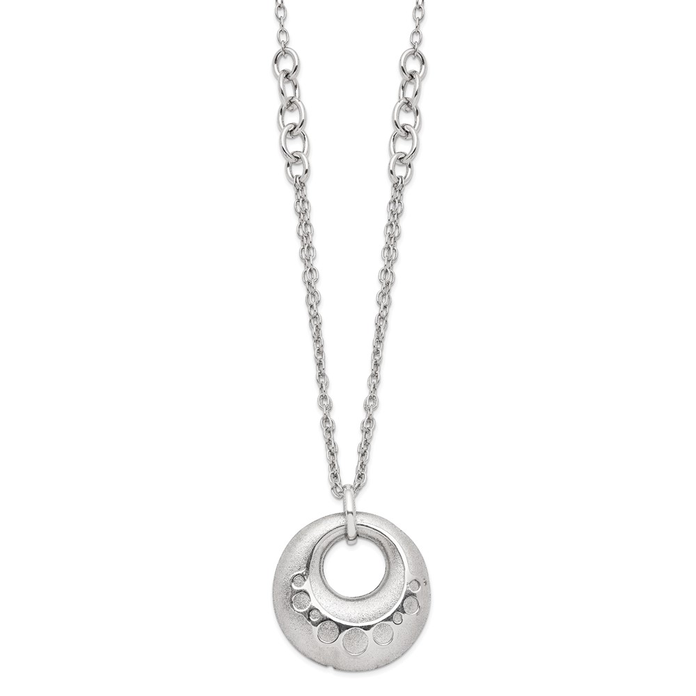 Leslie's Sterling Silver Scratch-finish Circle w/1in ext. Necklace