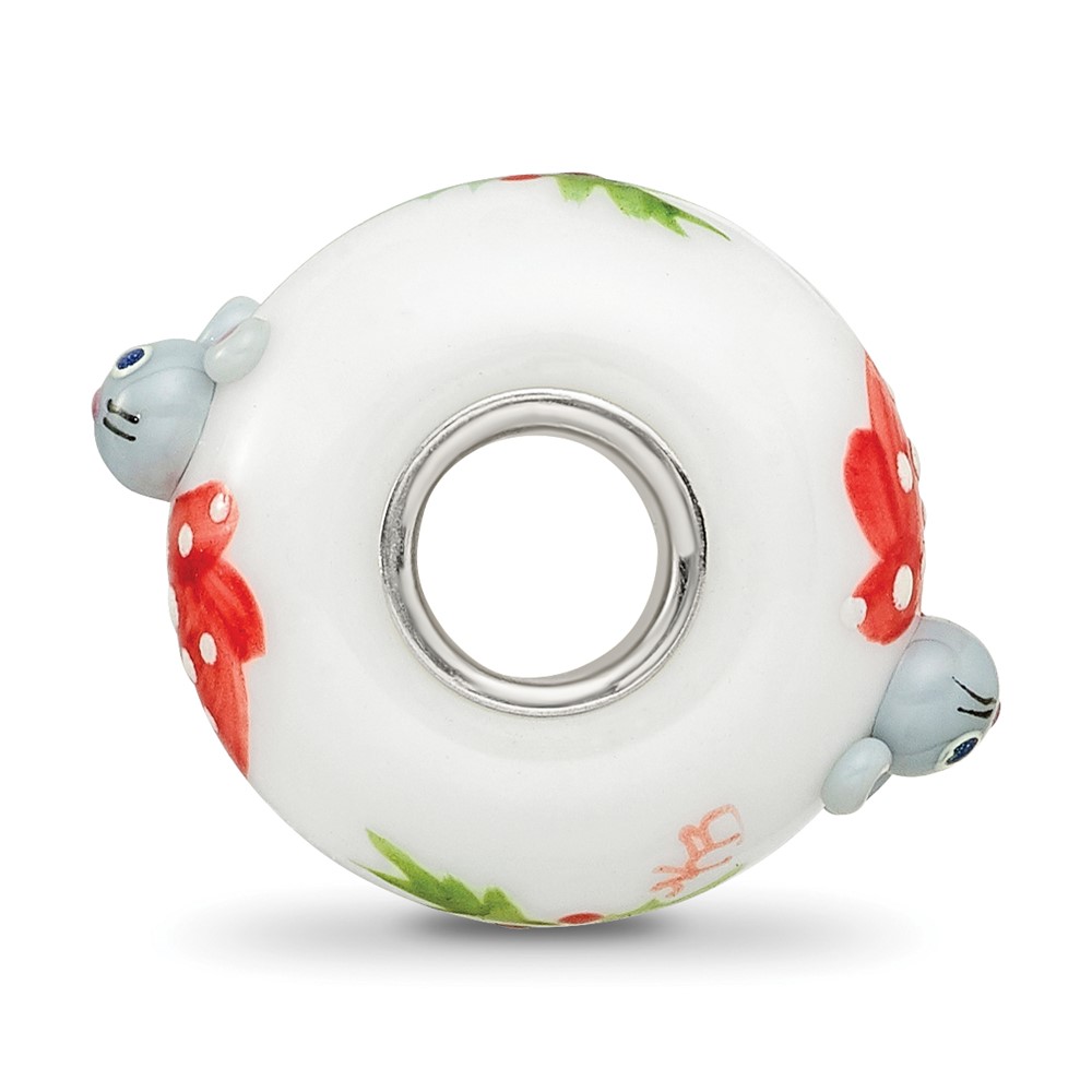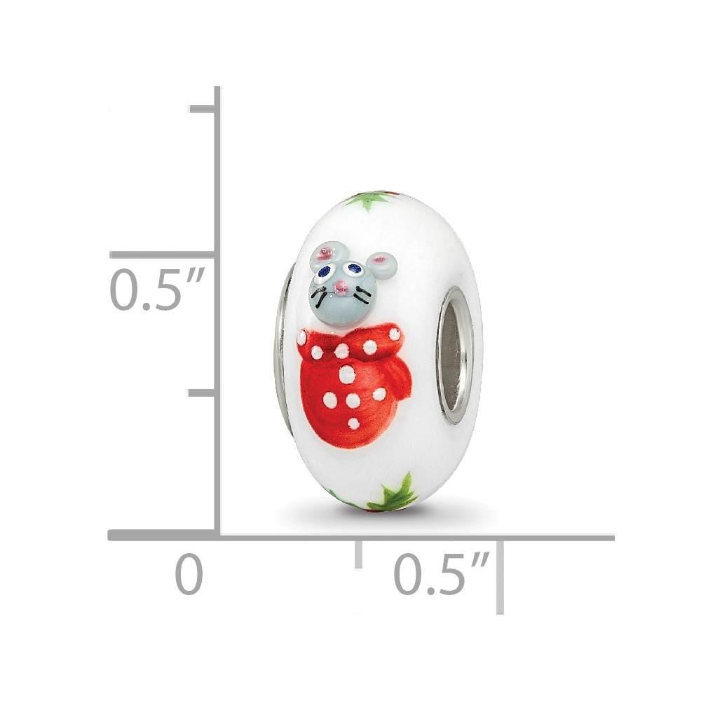 Ster.Silver Reflections Hand Painted Christmas Mouse Fenton Glass Bead