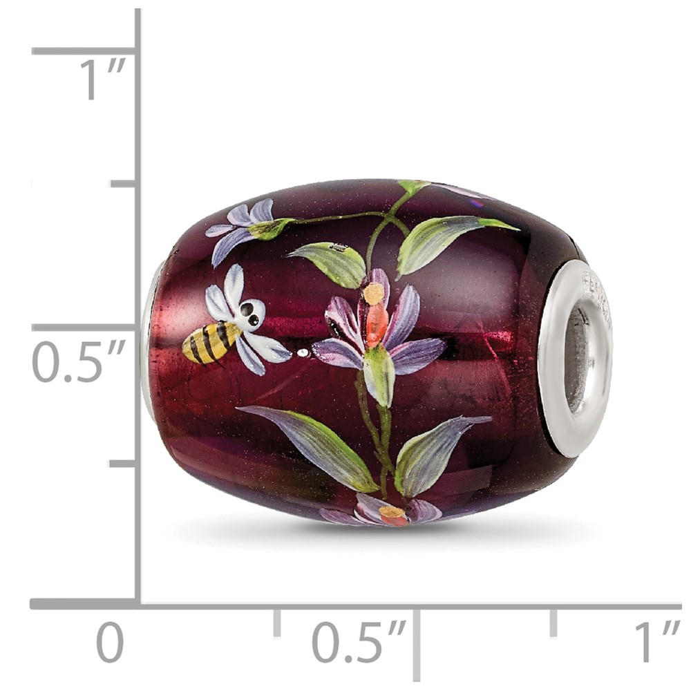 Ster.Silver Reflections Purple Hand Painted Magnolias Fenton Glass Bead