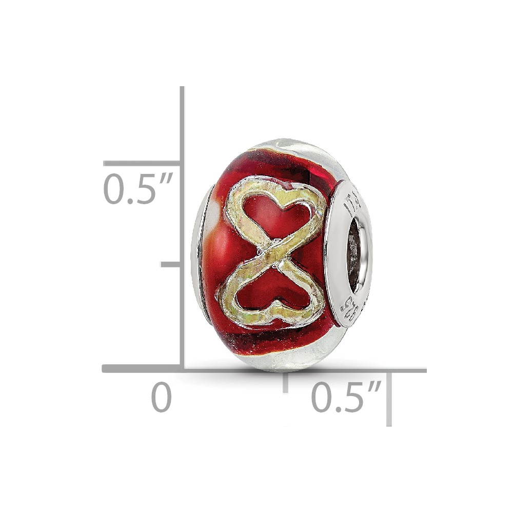 Sterling Silver Reflections Foil Heart Infinity Red Italian Glass Bead