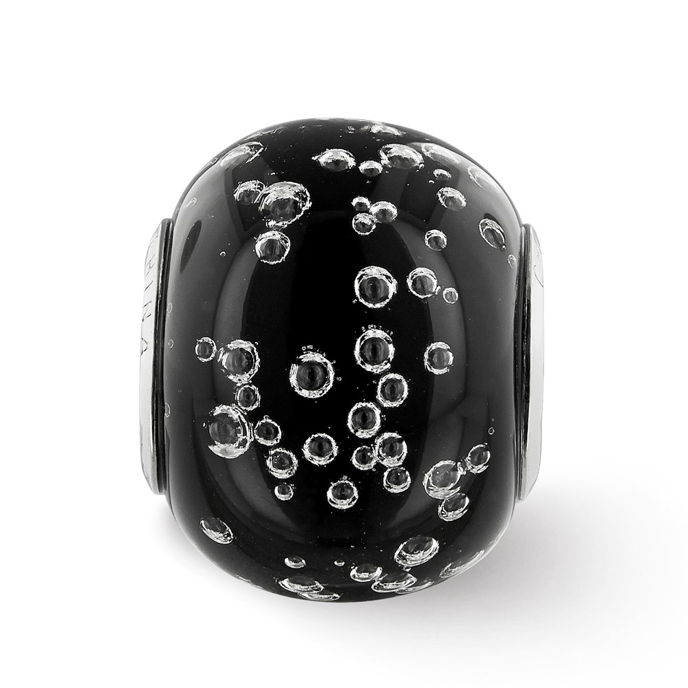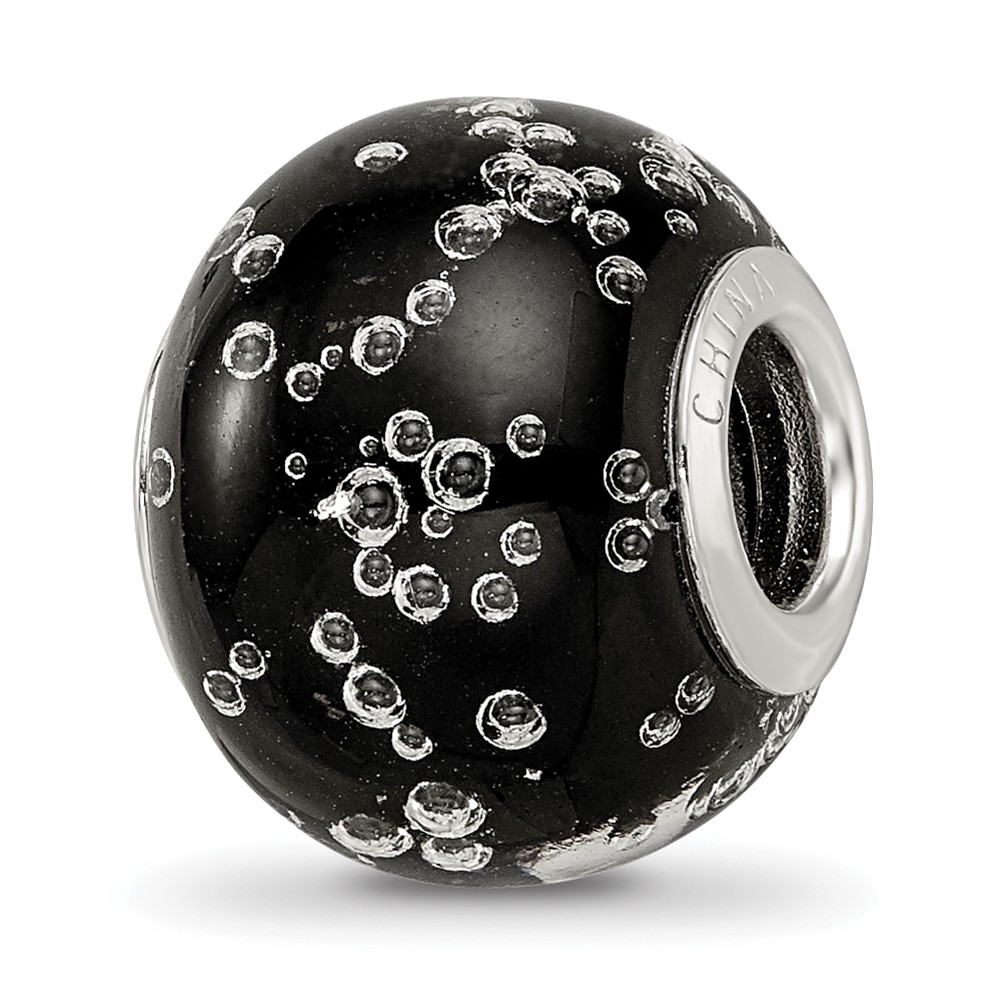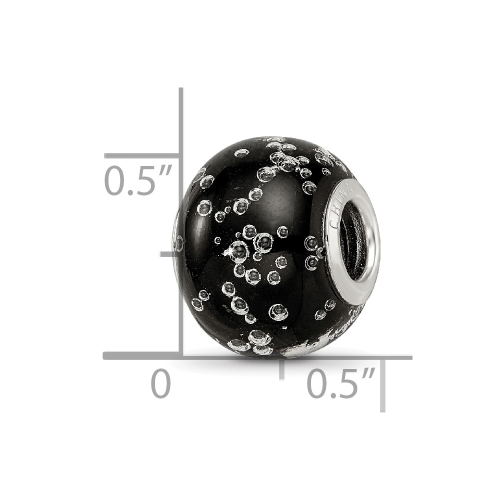 Sterling Silver Reflections Rhodium-plated Bubbles Black Glass Bead