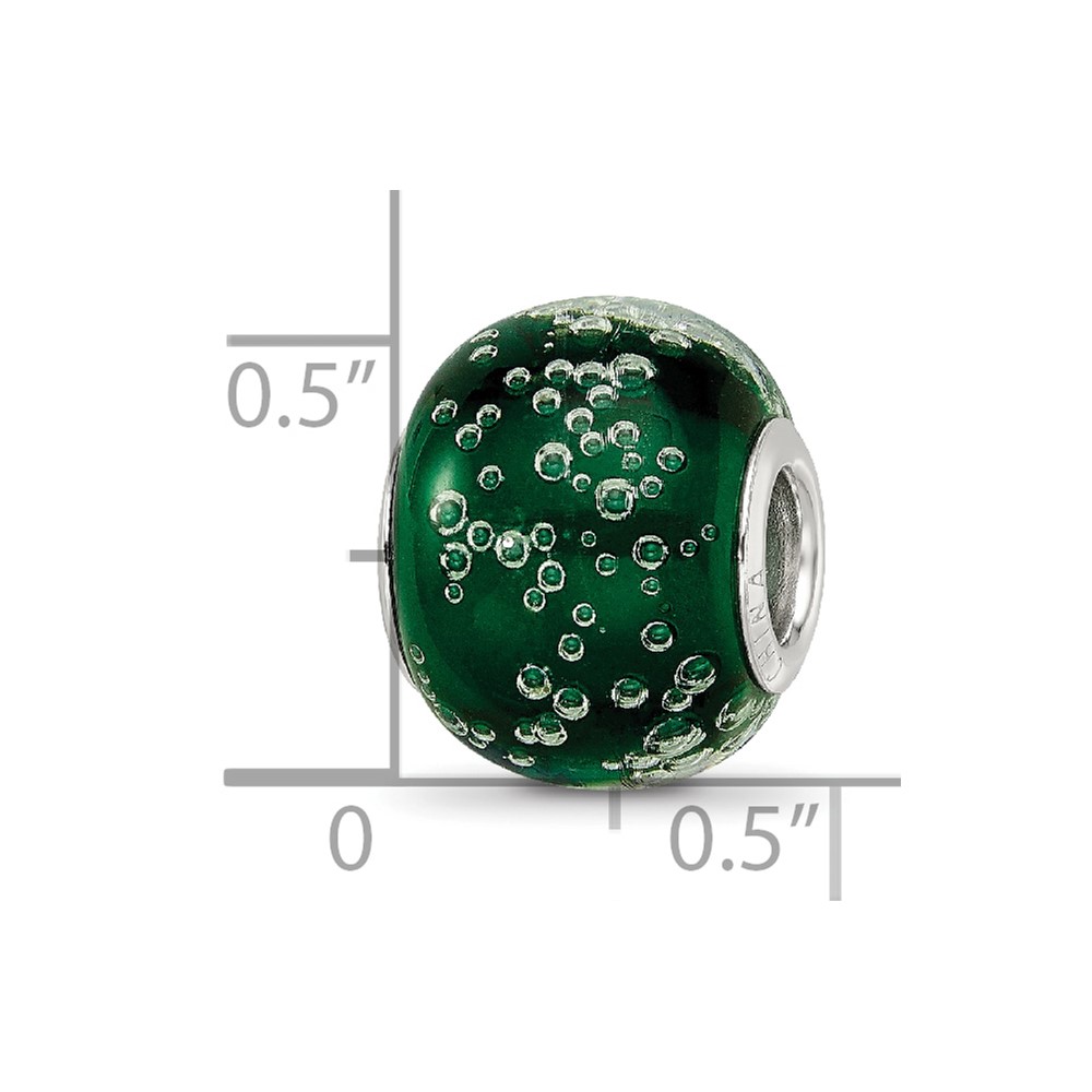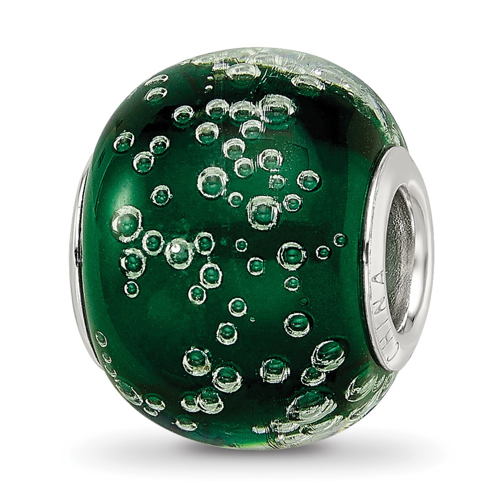 Sterling Silver Reflections Rh-plated Bubbles Green Glass Bead