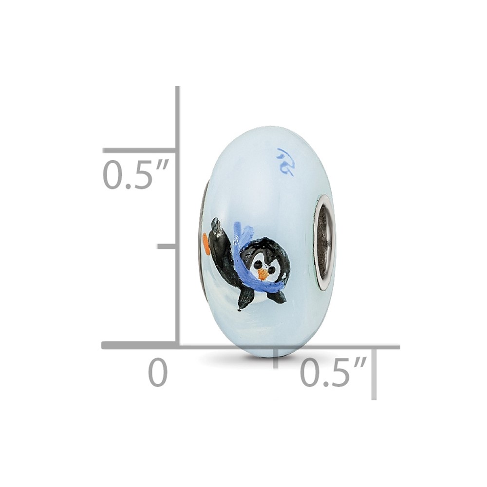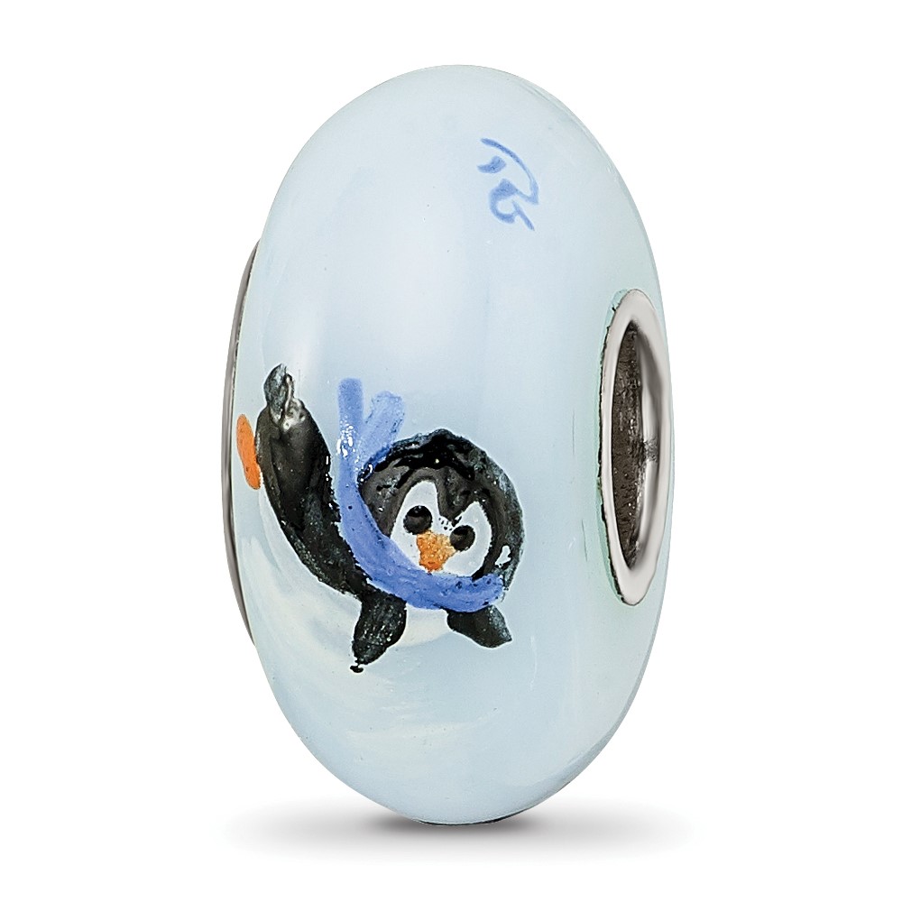 Ster.Silver Reflections Hand Painted Penguin Frolic Fenton Glass Bead