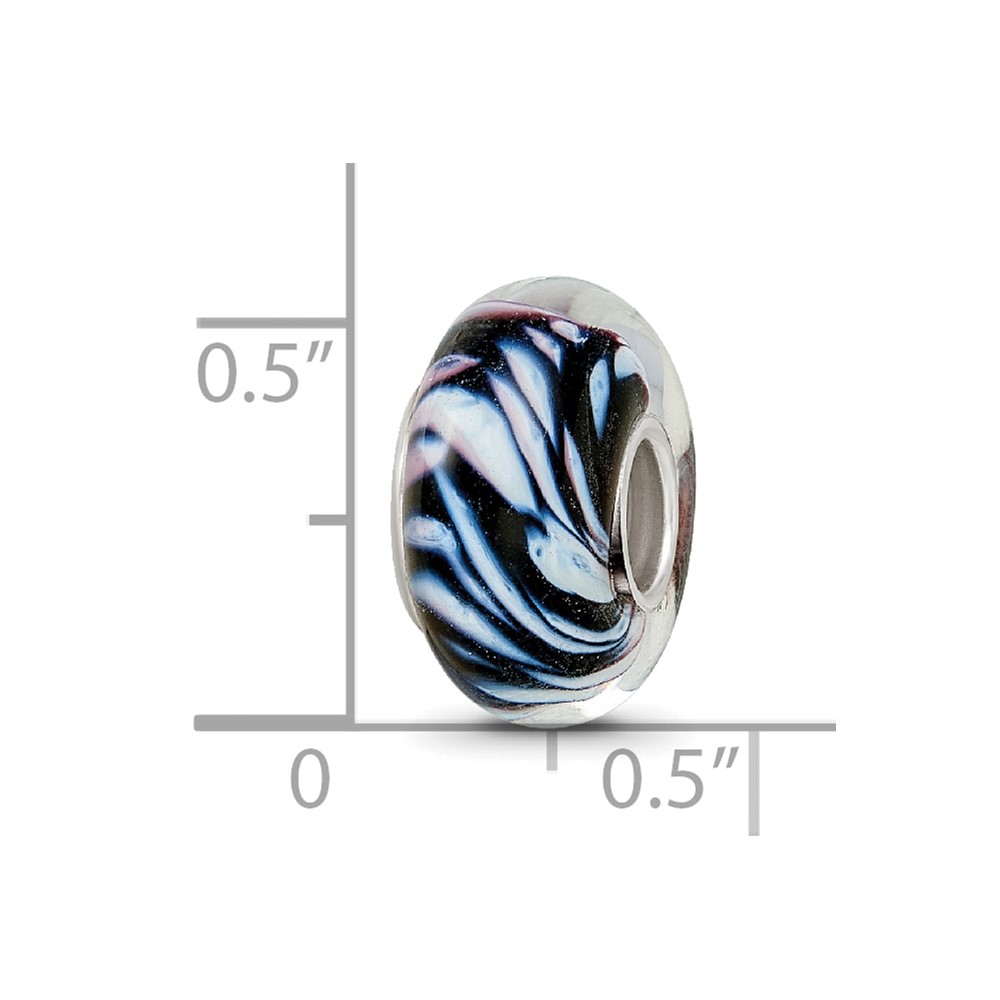 Ster.Silver Reflections Hand Painted Swirling Snow Fenton Glass Bead