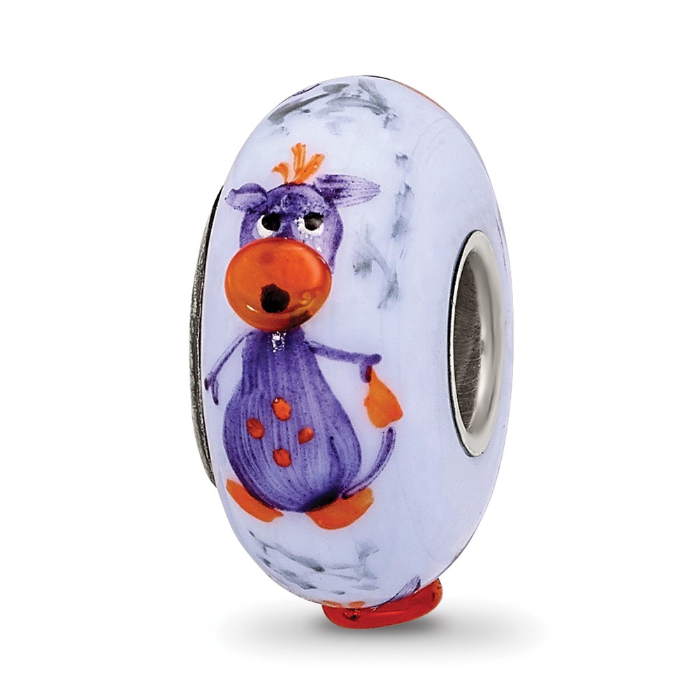 Sterling Silver Reflections Hand Painted Dragon, Purple Glass Bead