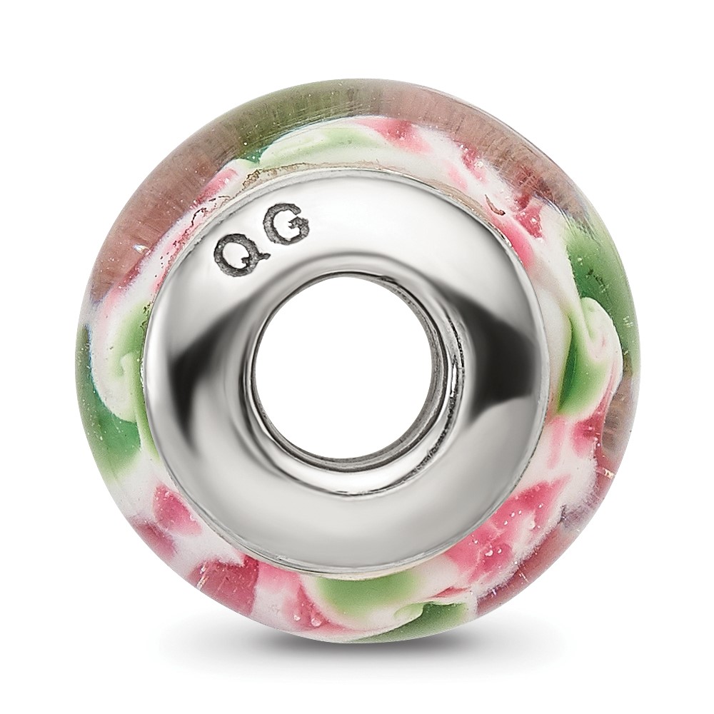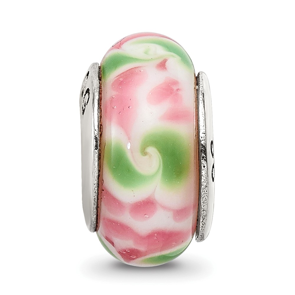 Sterling Silver Reflections Pink/Green Hand-blown Glass Bead