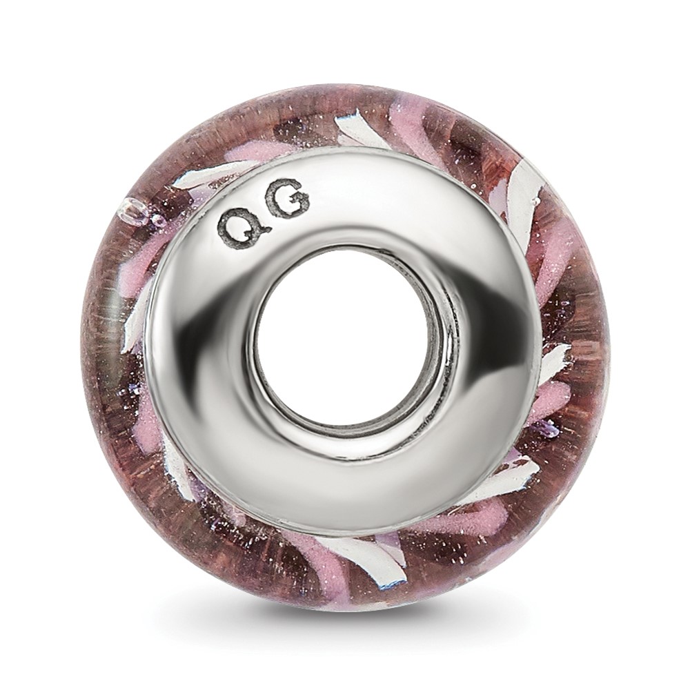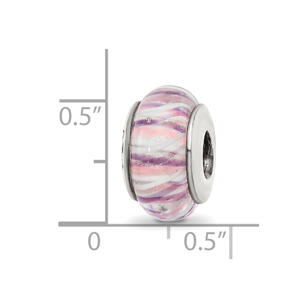 Sterling Silver Reflections Rose Striped Hand-blown Glass Bead