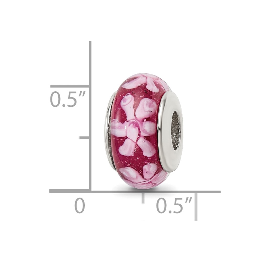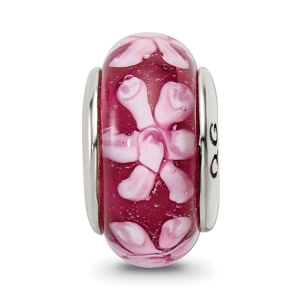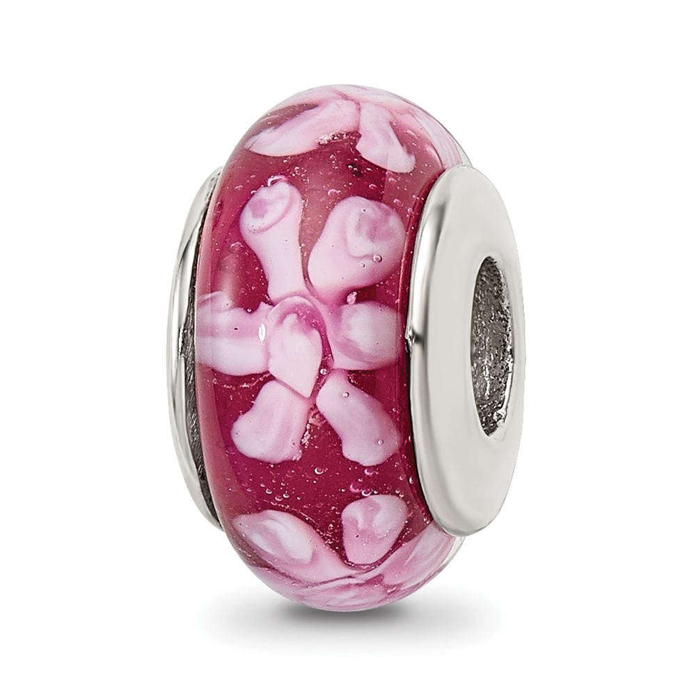 Sterling Silver Reflections Purple Floral Hand-blown Glass Bead