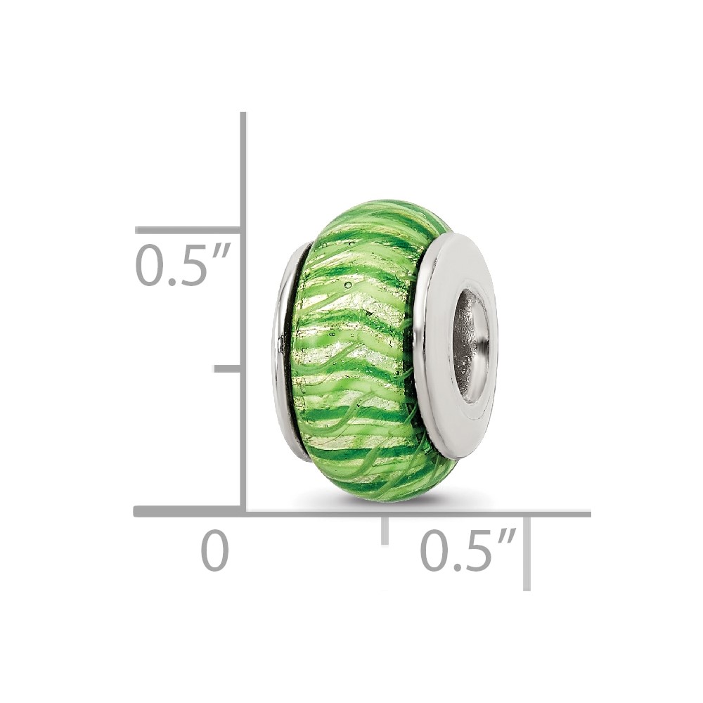 Sterling Silver Reflections Green Hand-blown Glass Bead