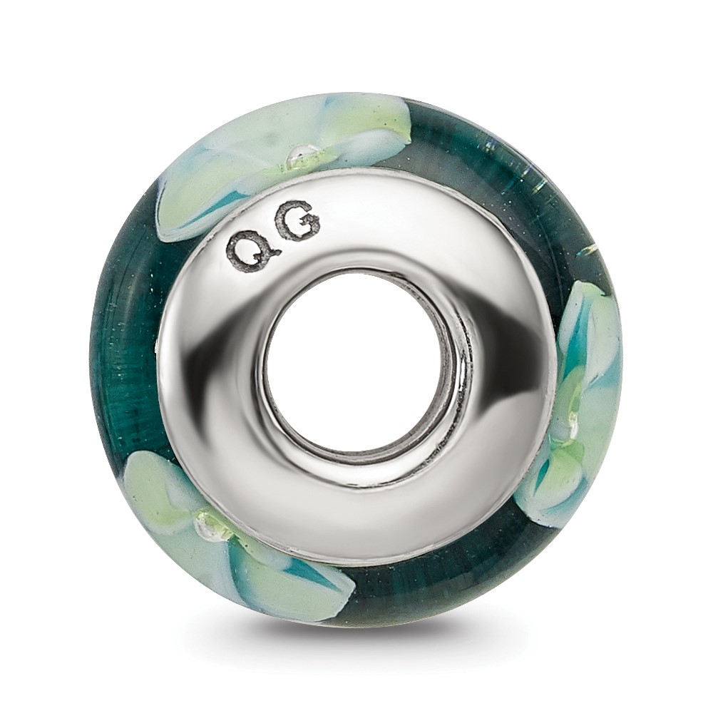 Sterling Silver Reflections Blueish Green Floral Hand-blown Glass Bead