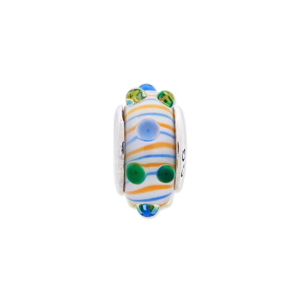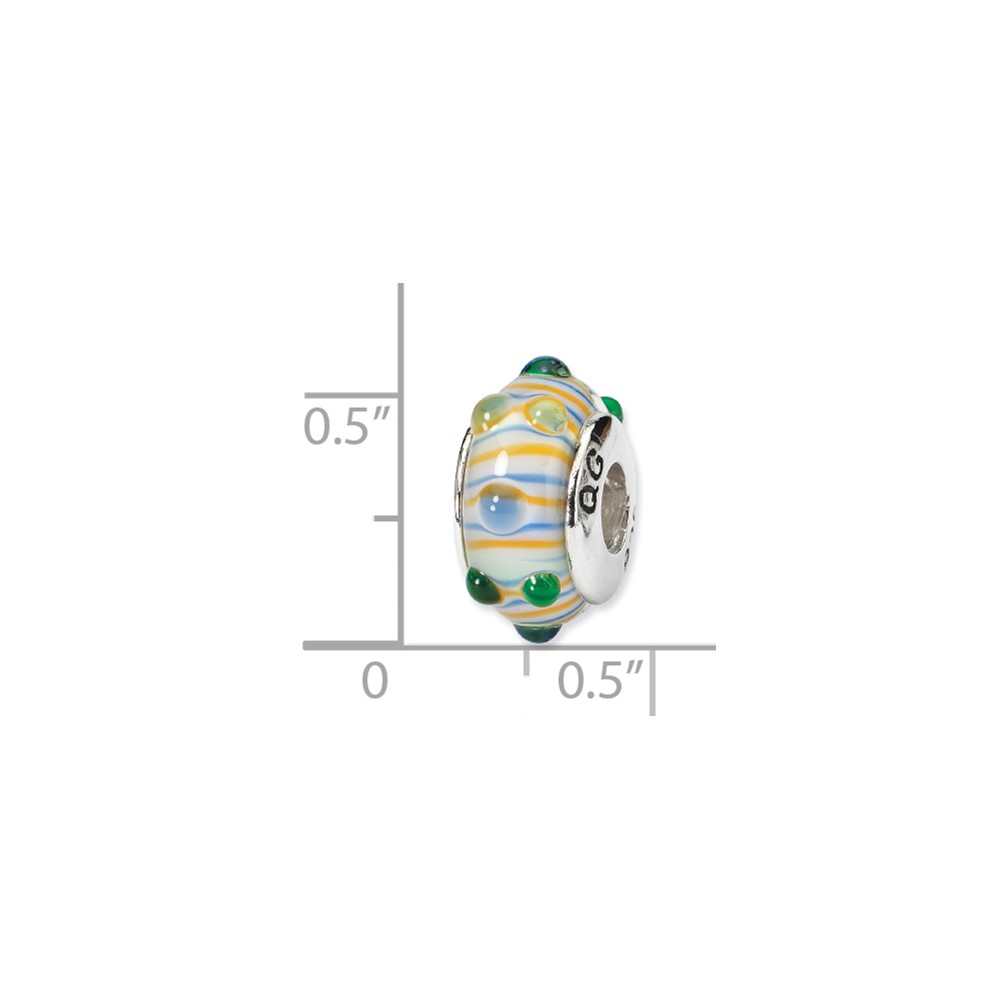 Sterling Silver Reflections Blue/ Green/Yellow Hand-blown Glass Bead