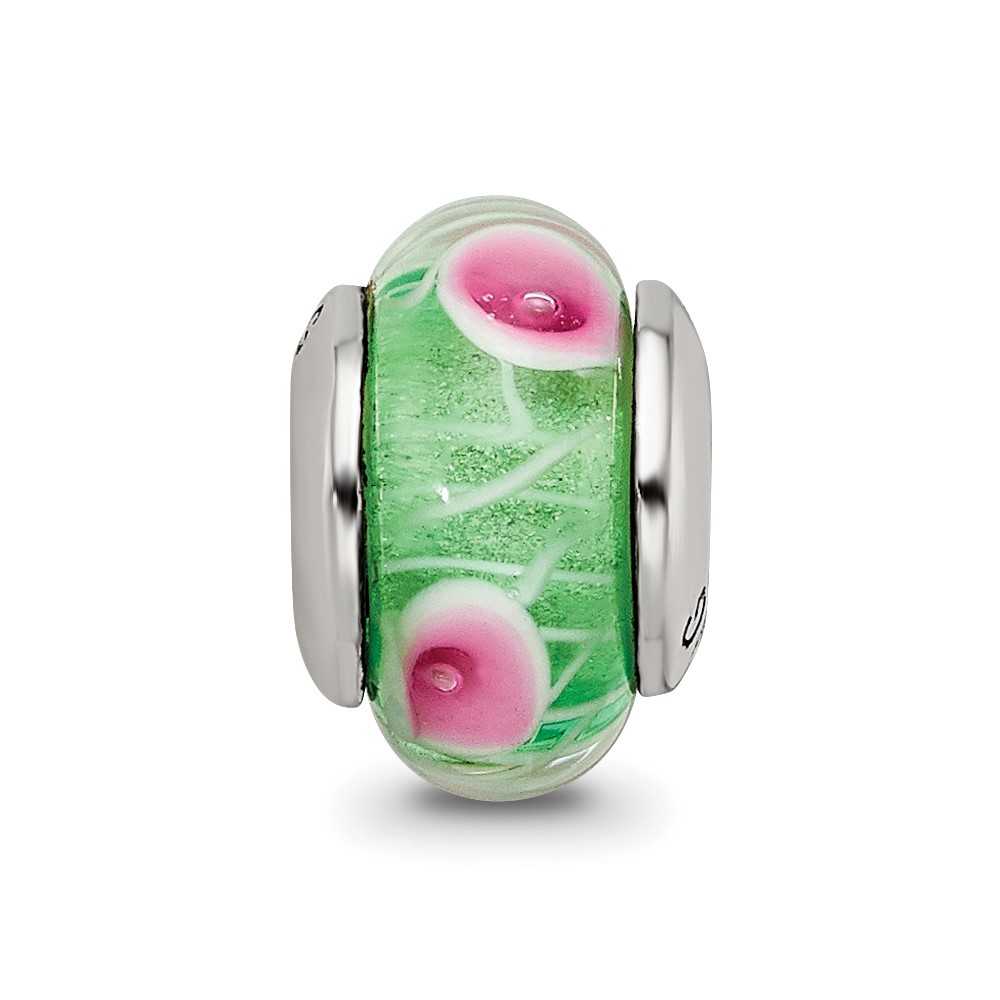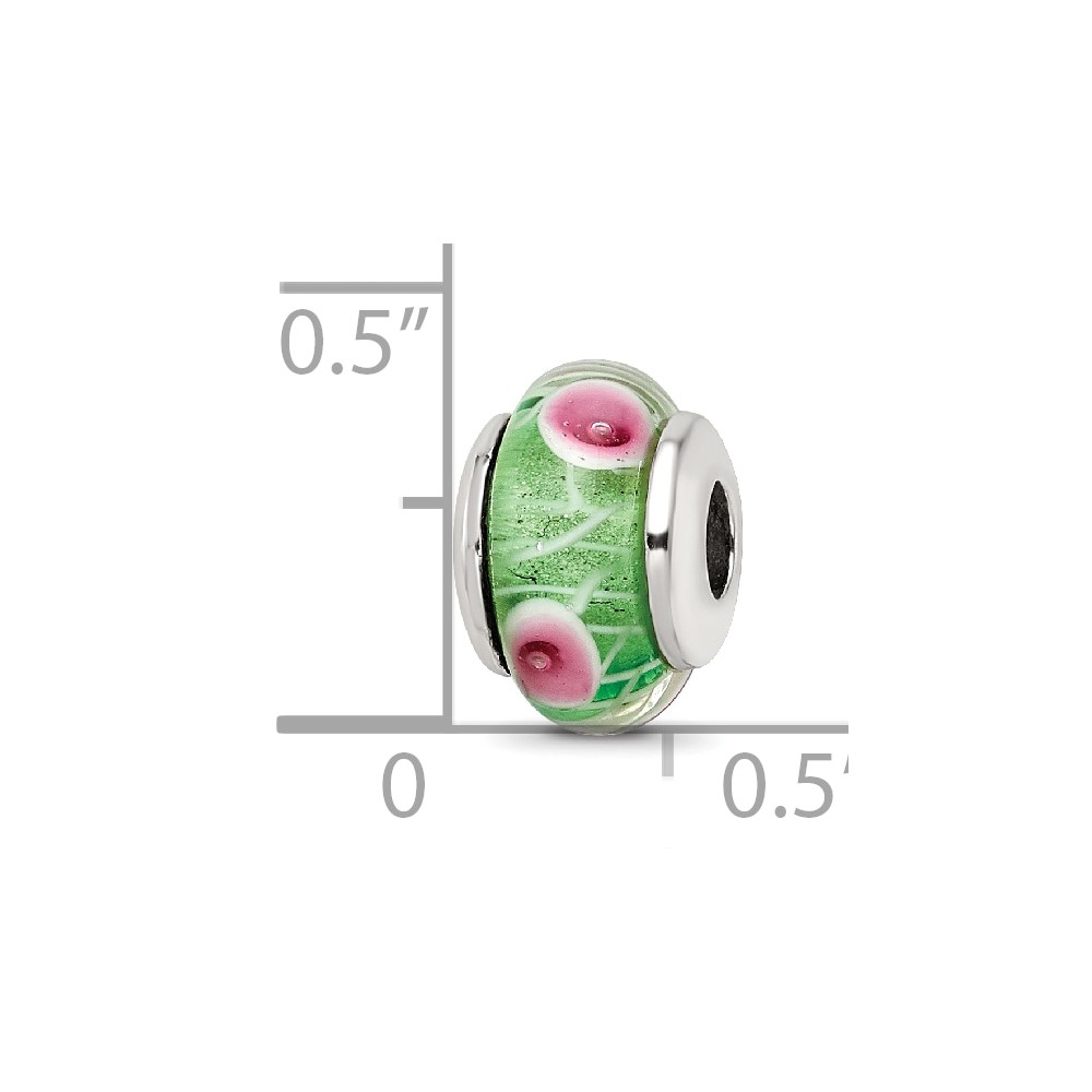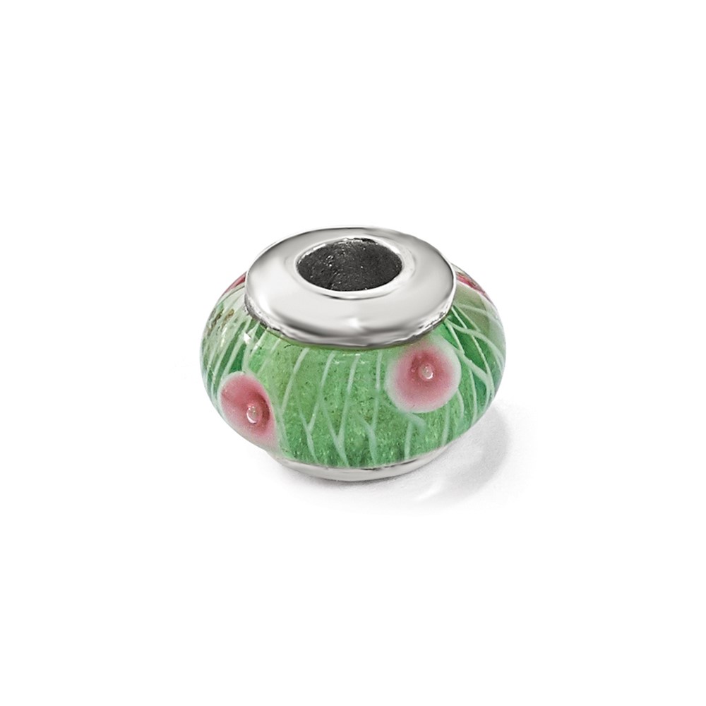 Sterling Silver Reflections Kids Green Hand-blown Glass Bead