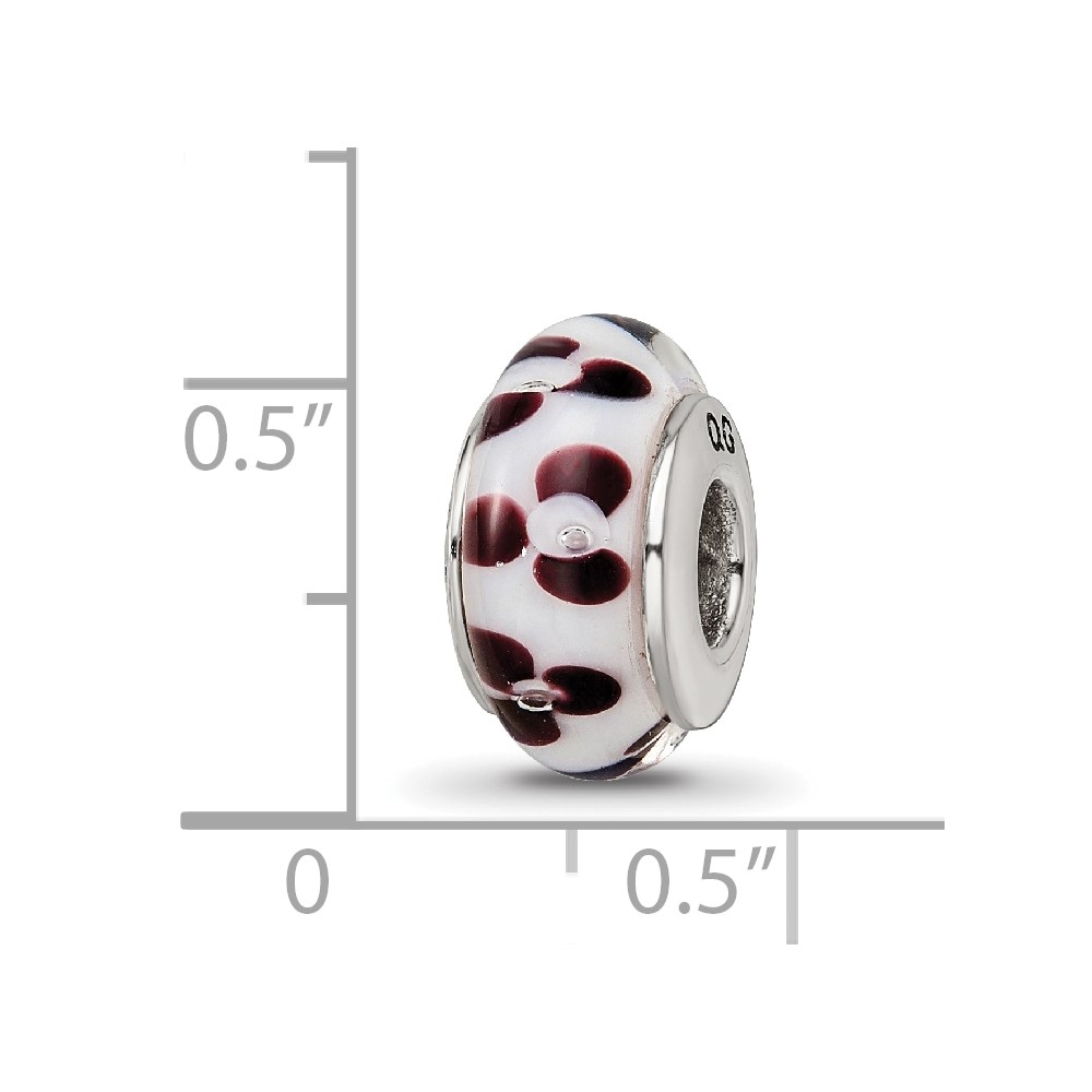 Sterling Silver Reflections Brown Floral Hand-blown Glass Bead