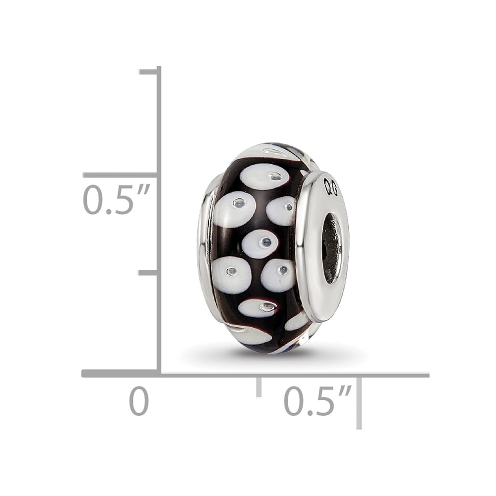 Sterling Silver Reflections Black/White Hand-blown Glass Bead