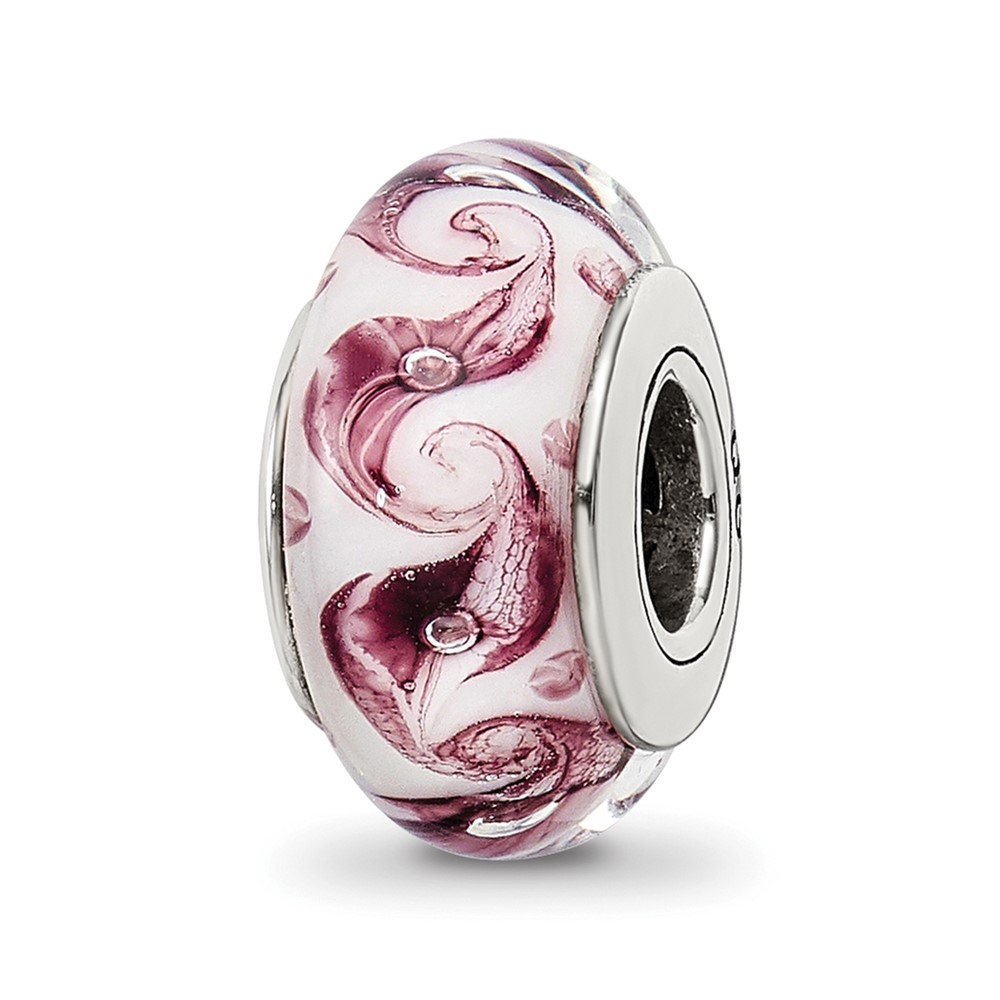 Sterling Silver Reflections White/Mauve Swirl Hand-blown Glass Bead
