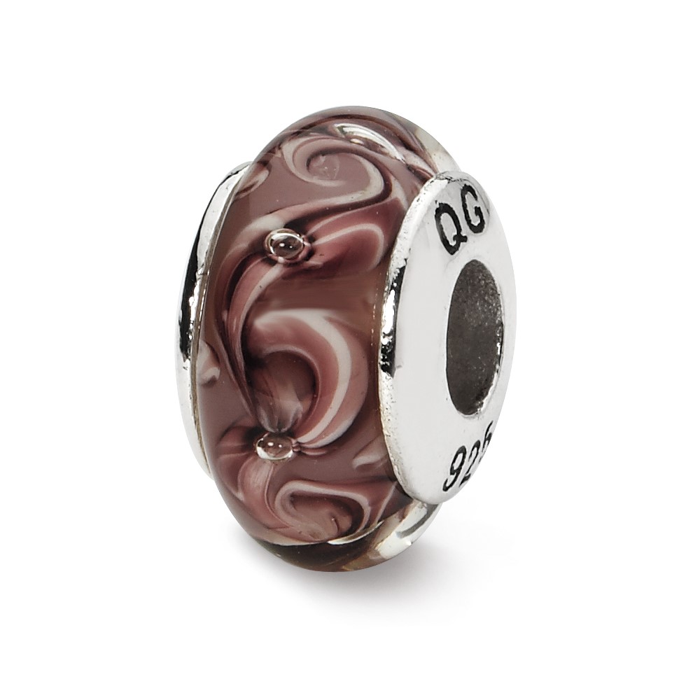 Sterling Silver Reflections Purple Swirl Hand-blown Glass Bead