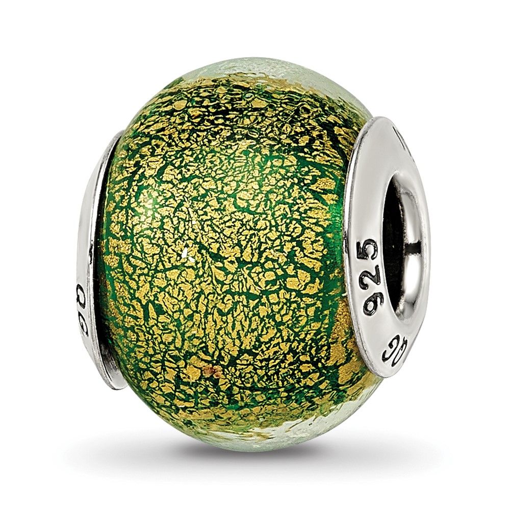 Sterling Silver Reflections Green/Gold Italian Murano Bead