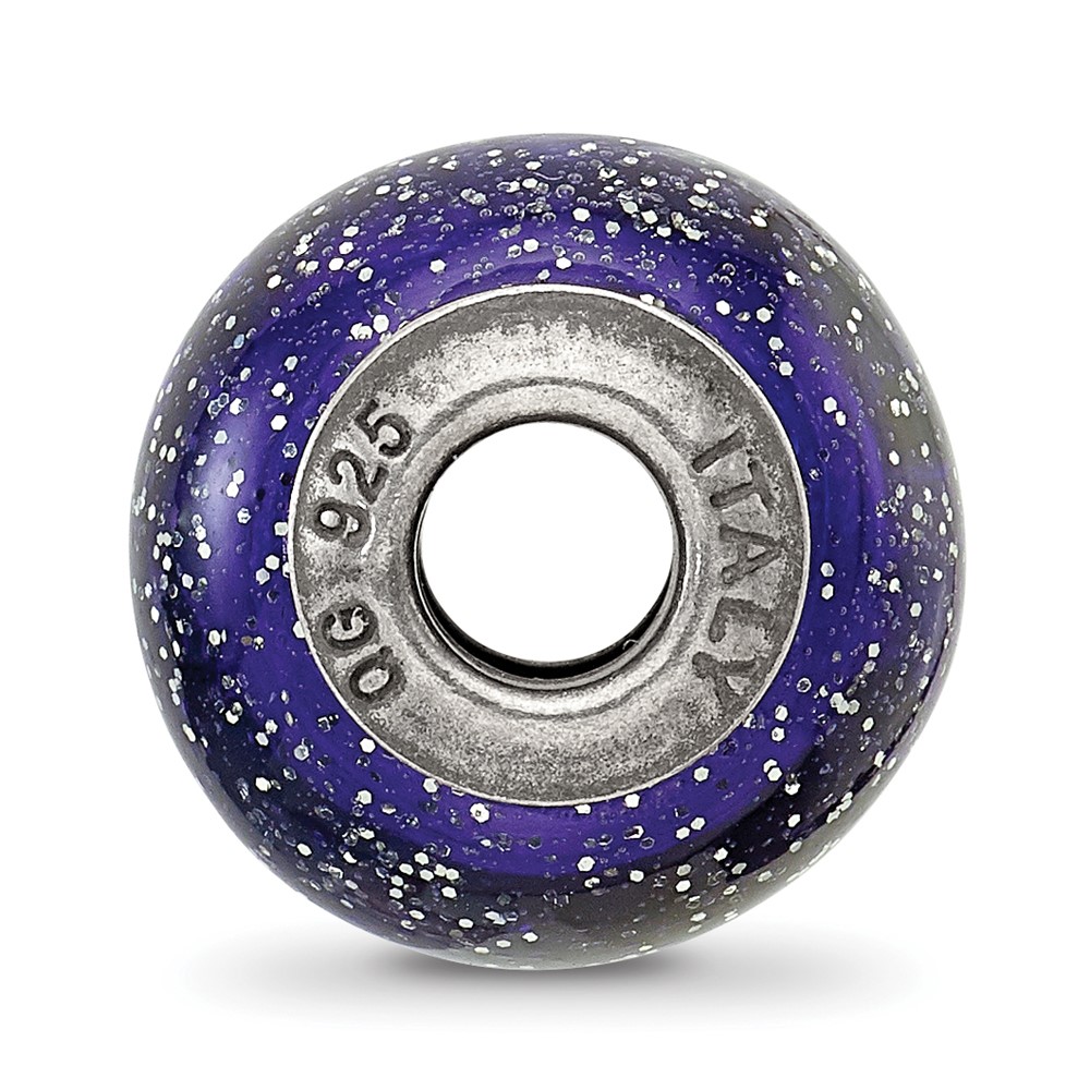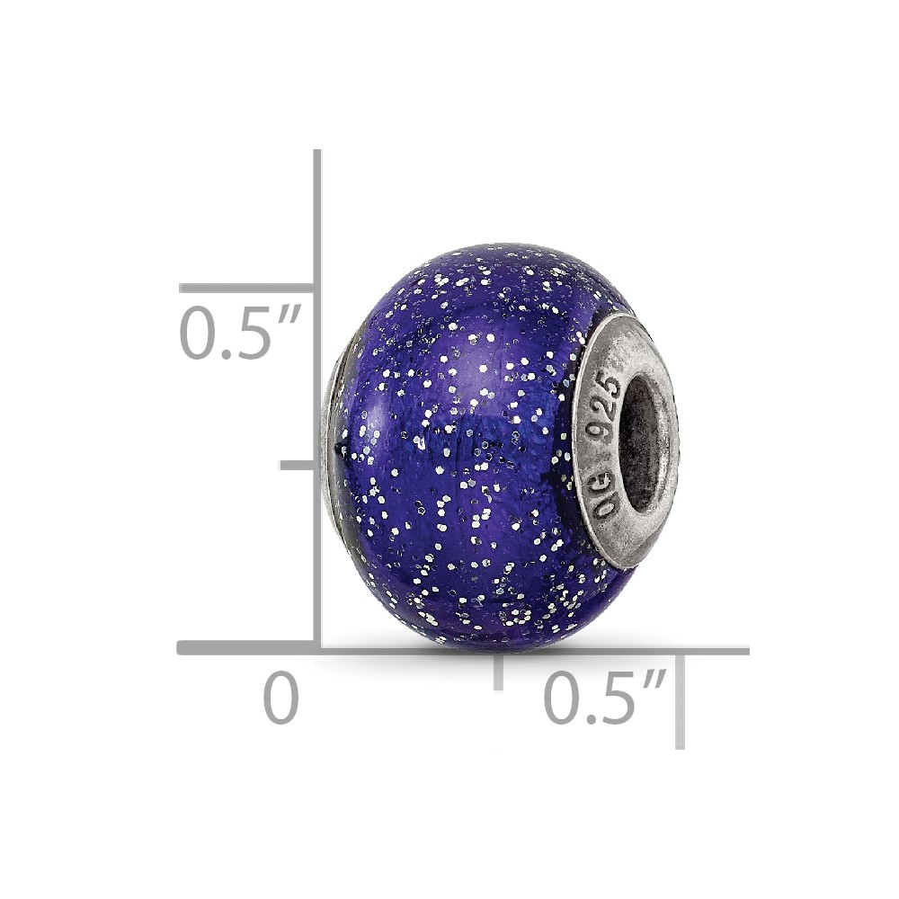 Sterling Silver Reflections Dark Blue w/Silver Glitter Italian Murano Bead