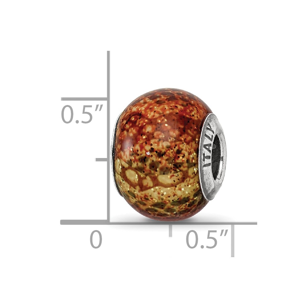 Sterling Silver Reflections Lt Brown Python Glitter Overlay Glass Bead