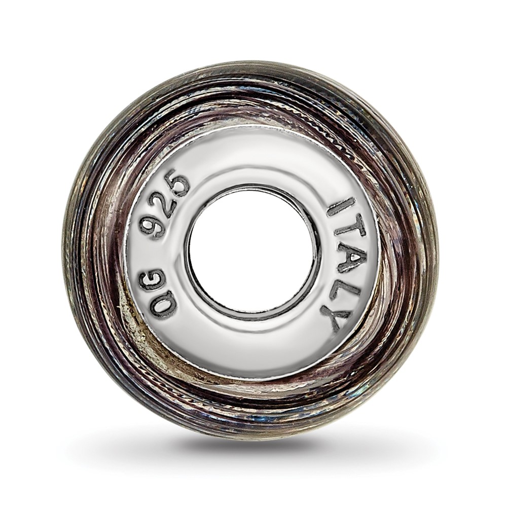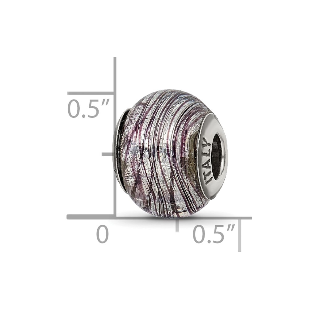 Sterling Silver Reflections Italian Murano Purple Stripes Glass Bead