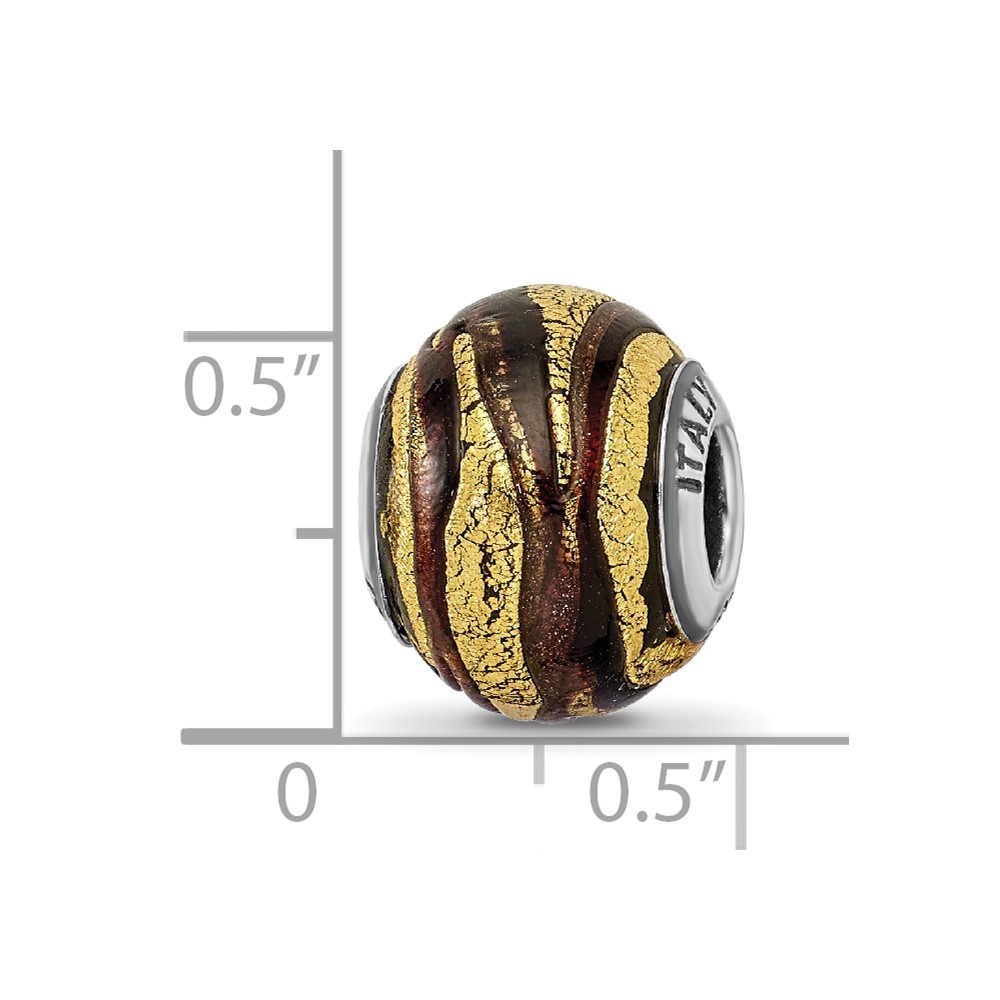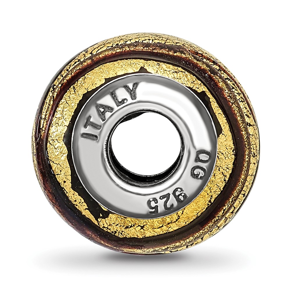 Sterling Silver Reflections Italian Brown & Gold Colored Glass Bead