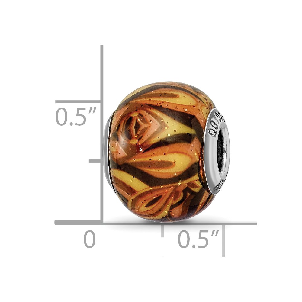 Sterling Silver Reflections Italian Decorative Orange Glass Bead