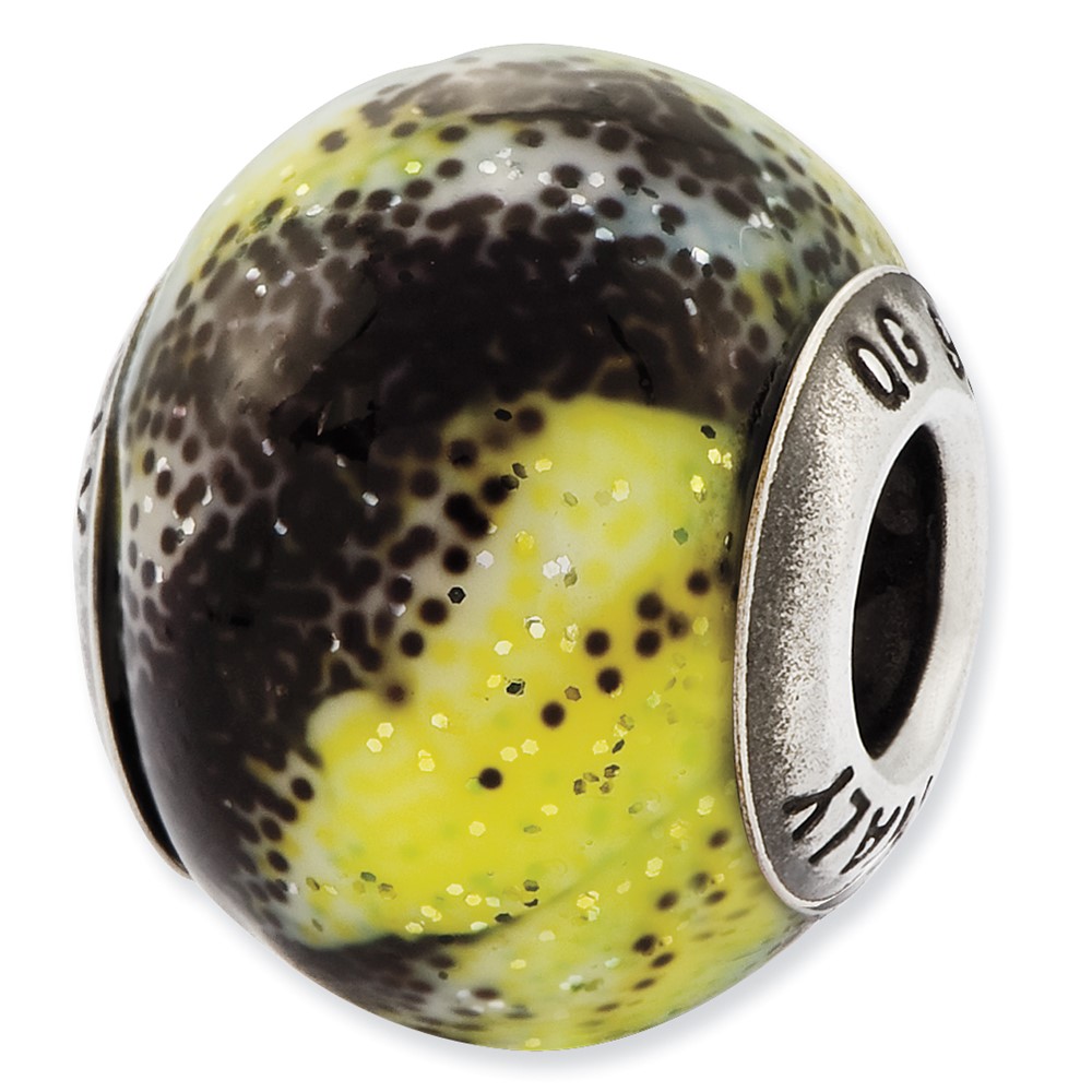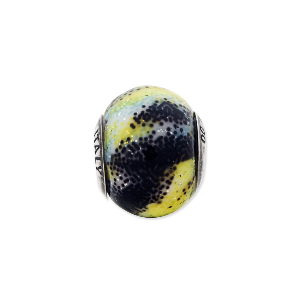 Sterling Silver Reflections Italian Green & Black Glass Bead